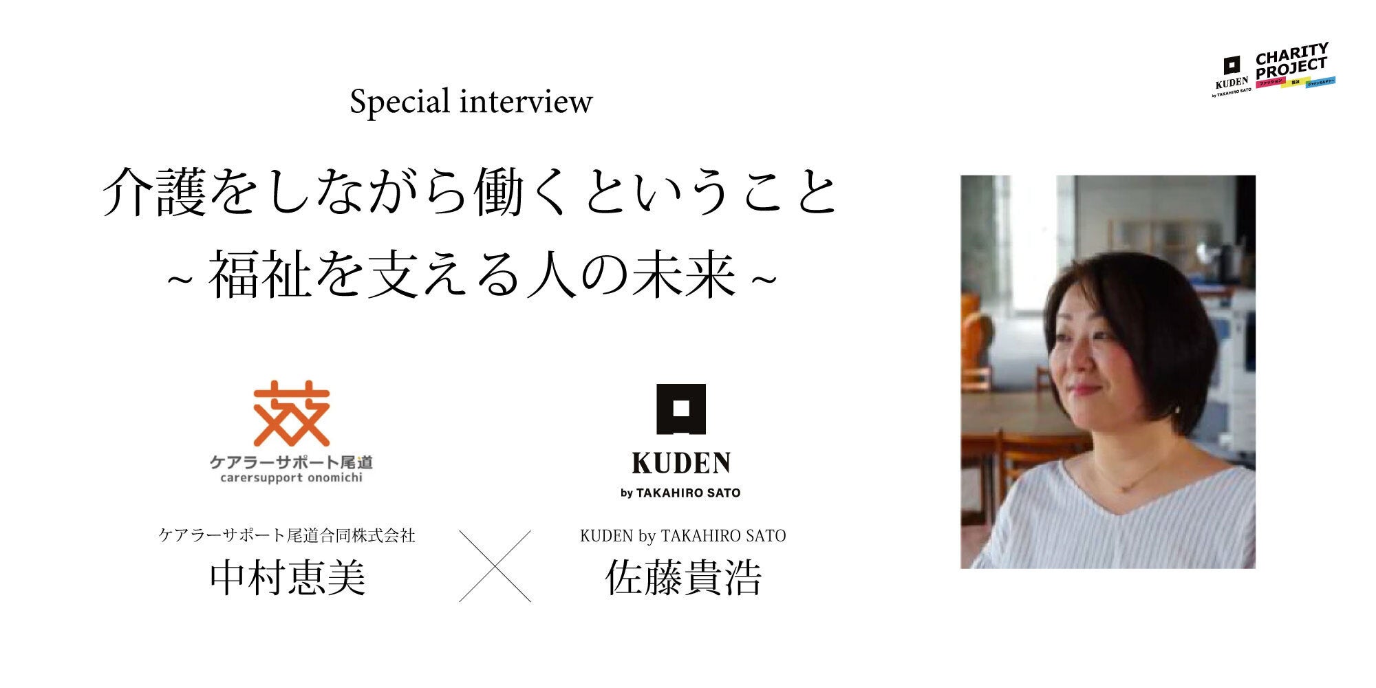 皆さんこんばんは!スタッフのセナです。本日は、KUDENチャリティーにコンテンツ協力でご参加頂いた”支える人を支える会社”、福祉教育で地域・施設・在宅のケアラー(介護者)を支えるケアラーサポート尾道合同会社代表、中村恵美(なかむら よしみ)さんのインタビュー動画を公開致しました。KUDENでは今後、障害福祉の現場だけでなく介護など福祉の分野についてもこうしてコンテンツで取り上げ、引き続きジャパンカルチャー、エンターテイメントの力を通じて1人でも多くの方に知っていただくきっかけ作りをして参ります。私は個人的にも、こちらのインタビューに同席させていただいたのですが、これから介護をする側になる身としてとても貴重なお話を聞くことができました。皆様是非一度ご覧ください!▼スペシャル対談「介護をしながら働くということ〜福祉を支える人の未来〜」 中村恵美(ケアラーサポート尾道合同会社)×佐藤貴浩(KUDEN)https://ku-den.jp/blogs/rin-life/carer-kudenまた、7月にこちらの活動報告にてチャリティーの収支報告をさせて頂きます。皆様是非もうしばらくお付き合い下さい。KUDENスタッフセナ