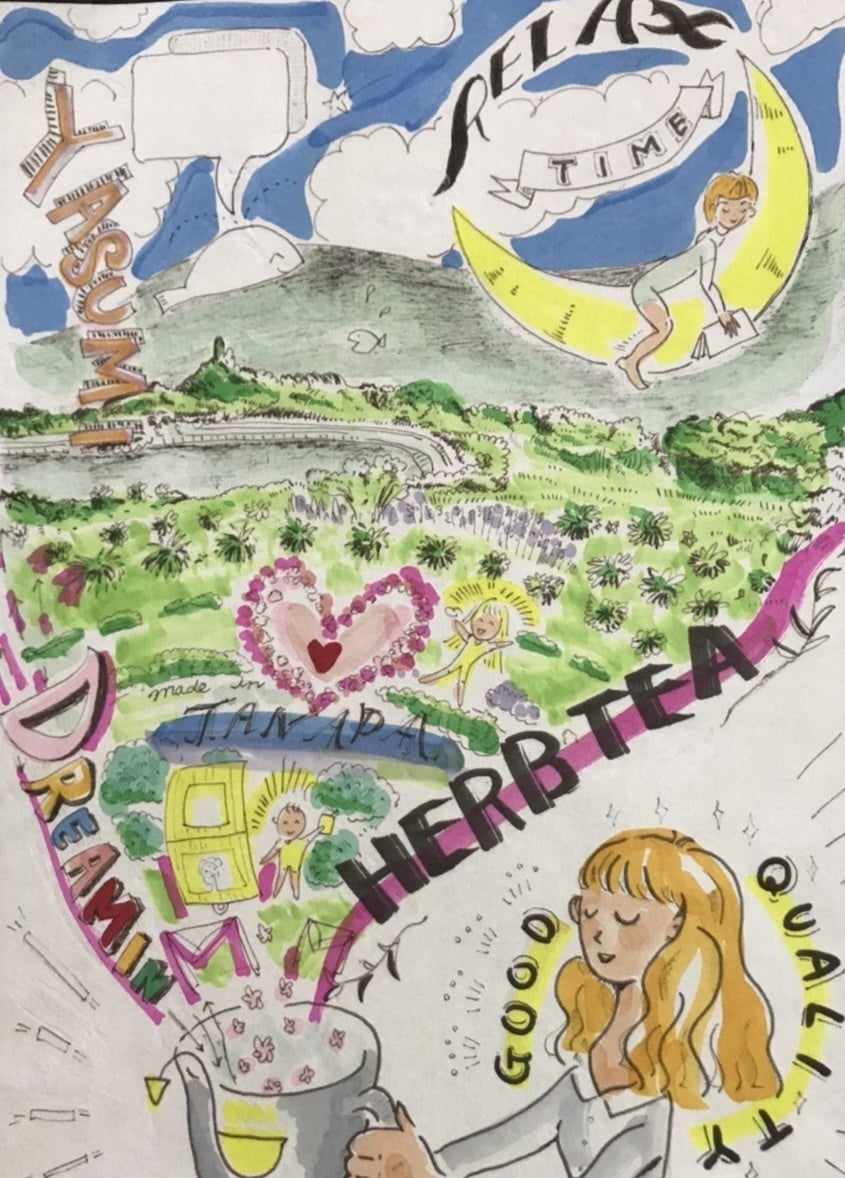 そして、パッケージのイラストはイラストレーター小玉西瓜によるもの。ハーブティー好きの彼女が棚田の花段に初めて訪れた時の感動を描いてもらいました。私の幼馴染でもある彼女と共に、棚田の花段を盛り上げることができることも、日々の私の活力と癒しになっています。