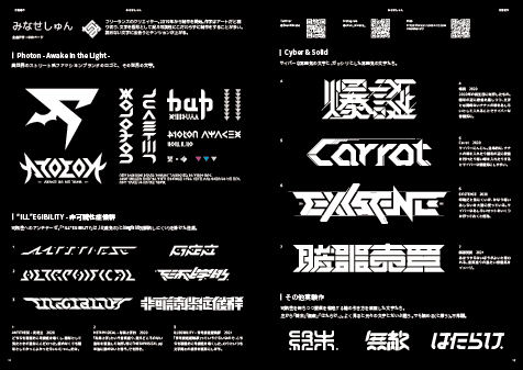 第1部は、参加クリエイターの作字作品をご紹介するパートです。それぞれのクリエイターの作字が新作旧作問わず掲載されており、ひとりひとりの個性が前面に押し出されています。