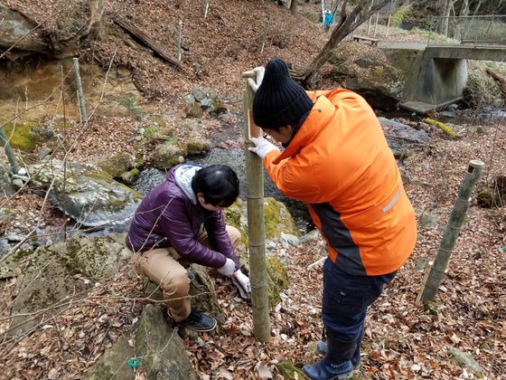 杭を地面に打ち込み、竹を番線で固定するという地味な作業・・・一日作業をしてみると腕なんかはパンパンで、現在、活動報告を作成する指も震えております(笑)