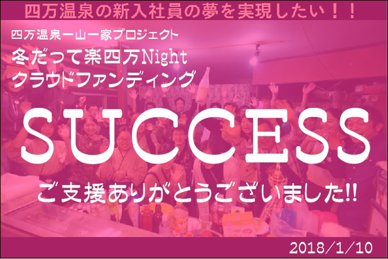 この度は一山一家プロジェクト「四万温泉 冬だって楽四万Night(たのしまないと)」!にご支援いただき誠にありがとうございました。