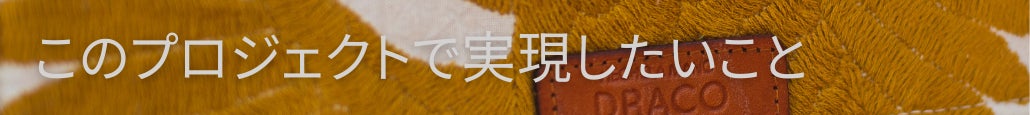 今回このプロジェクトで実現したいことは、DRACOの商品を通して、皆様にファッション業界が抱える問題や、メキシコが抱える問題を知ってもらい、より身近に感じていただくきっかけを作ること。また商品を手に取ったお客様に、生産者が一つ一つ思いを込めて作ったメキシコらしい明るい色使いの商品からパワーを感じていただくこと。そうすることで、メキシコ、日本また世界中に生きる皆様へ明るい未来をお届けできると考えております。