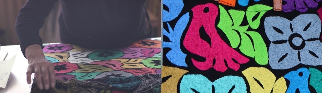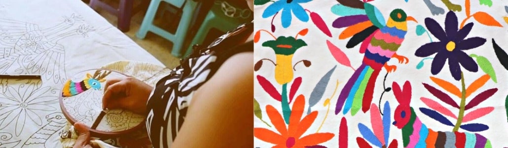 テナンゴの刺繍は、オトミ族の伝統に基づいており、職人は色とりどりの糸を使って、この地域の動植物が織り成す美しい風景を表現しています。
