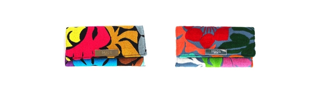 作品は熟練した職人による手織りや手刺繍で作られ、そこにDRACOの創設者兼デザイナーのZuelemとPamelaにより、生地や質感、カラーコンビネーションがプラスされユニークな伝統とモダンが融合した作品です。刺繍部分や手織りの生地は、3か月から2年ほどかけて作られるものもあります。