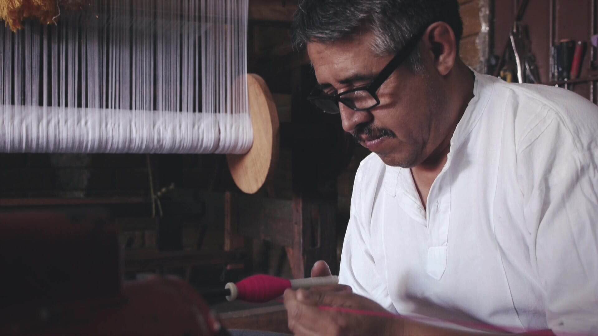 ペダル式織機は、16世紀にスペイン人がメキシコに持ち込んだ古代の技術です。木製の構造体をベースに、手や足の動きで綿やウールの生地を一枚一枚紡いでいきます。織り機を使うには、あらかじめ反った糸が必要で、それを横木に取り付けます。糸がつながった後は、それぞれの糸が針の中を通らなければなりません。それぞれの針にかかる糸の配列によって、作られる生地のデザインが決まります。