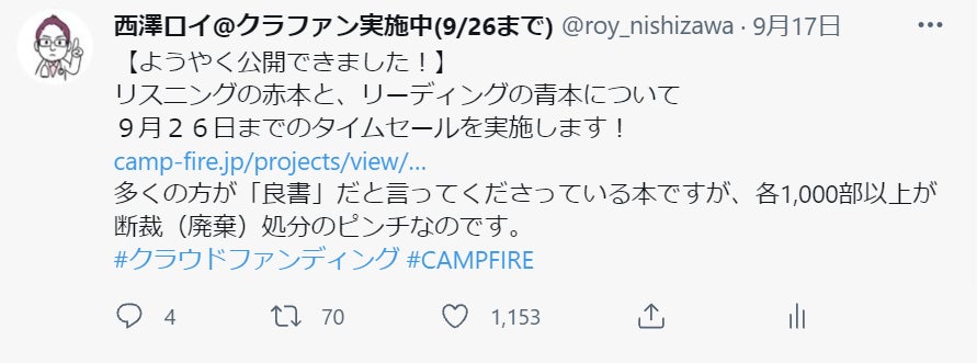 ツイッターをやっていらっしゃる方は、以下のツイートをいいね&RTしていただけますと嬉しいです!