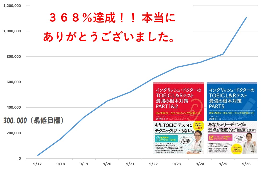 最初は30万円(300部の救出)を目標にしてスタートしましたが、そこから