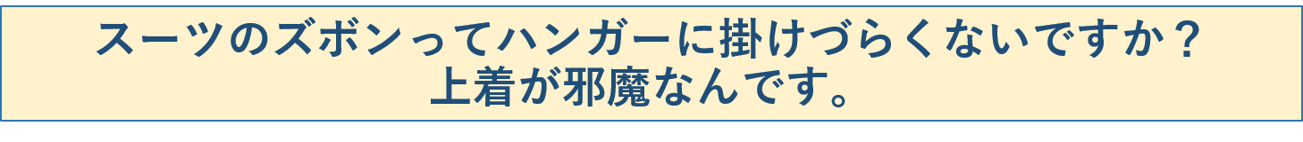 皆さんはスーツのズボンをハンガーに掛ける時、なにか不便さを感じませんか?