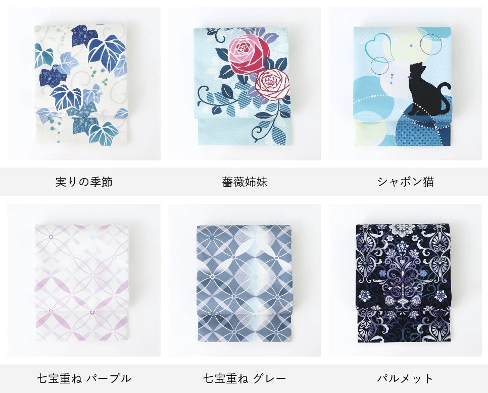数々の帯の中から、それぞれ着物の色に合わせていくつか配色していただき、その中から更に厳選して選んだ帯です。