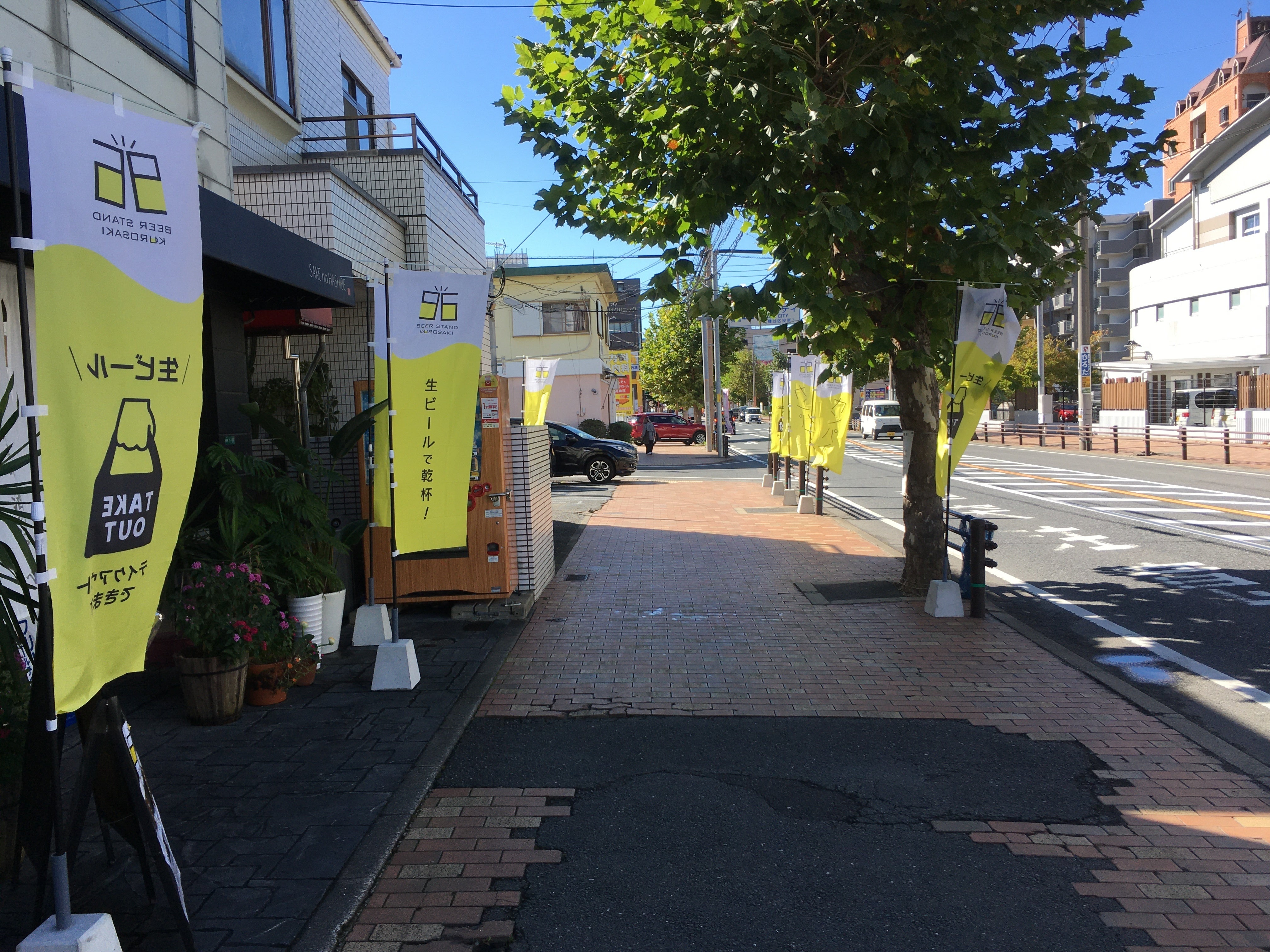 10月から本格的な営業を始めた,ビアスタンドを知っていただくためにお店の前にのぼりを設置いたしました。ビアスタンドは大通りに面しているので,お車で通る多くの方にも知っていただきたいと思います。いつかご来店していただければ嬉しいです。皆さまからの支援金は,のぼり,ポール,台座などの購入のために活用させていただいています。温かいご支援,ありがとうございます。