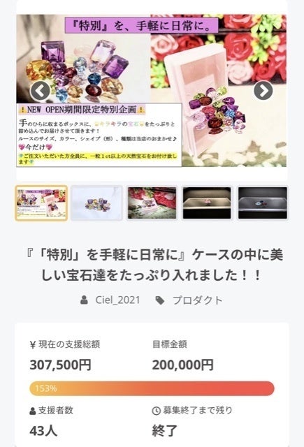 2021/09/29 18:46皆様いつもお世話になっております。株式会社Cielです。いよいよ当社のプロジェクト掲載が明日までとなりました!第1回目でご支援頂いた資金をもとに、今回も素敵な宝石を仕入れておりますので☆今一度ご支援頂ければと思います!何卒、応援の程宜しくお願い申し上げます!! もっと見る