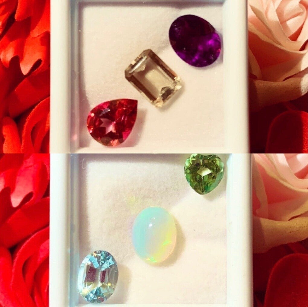 1ct以上のミスティックピンクダンビュライト・ゴールデンクォーツ・アメジスト・オパール・ブルートパーズ・ミスティックグリーントパーズを各1点ずつ詰め合わせました!!
