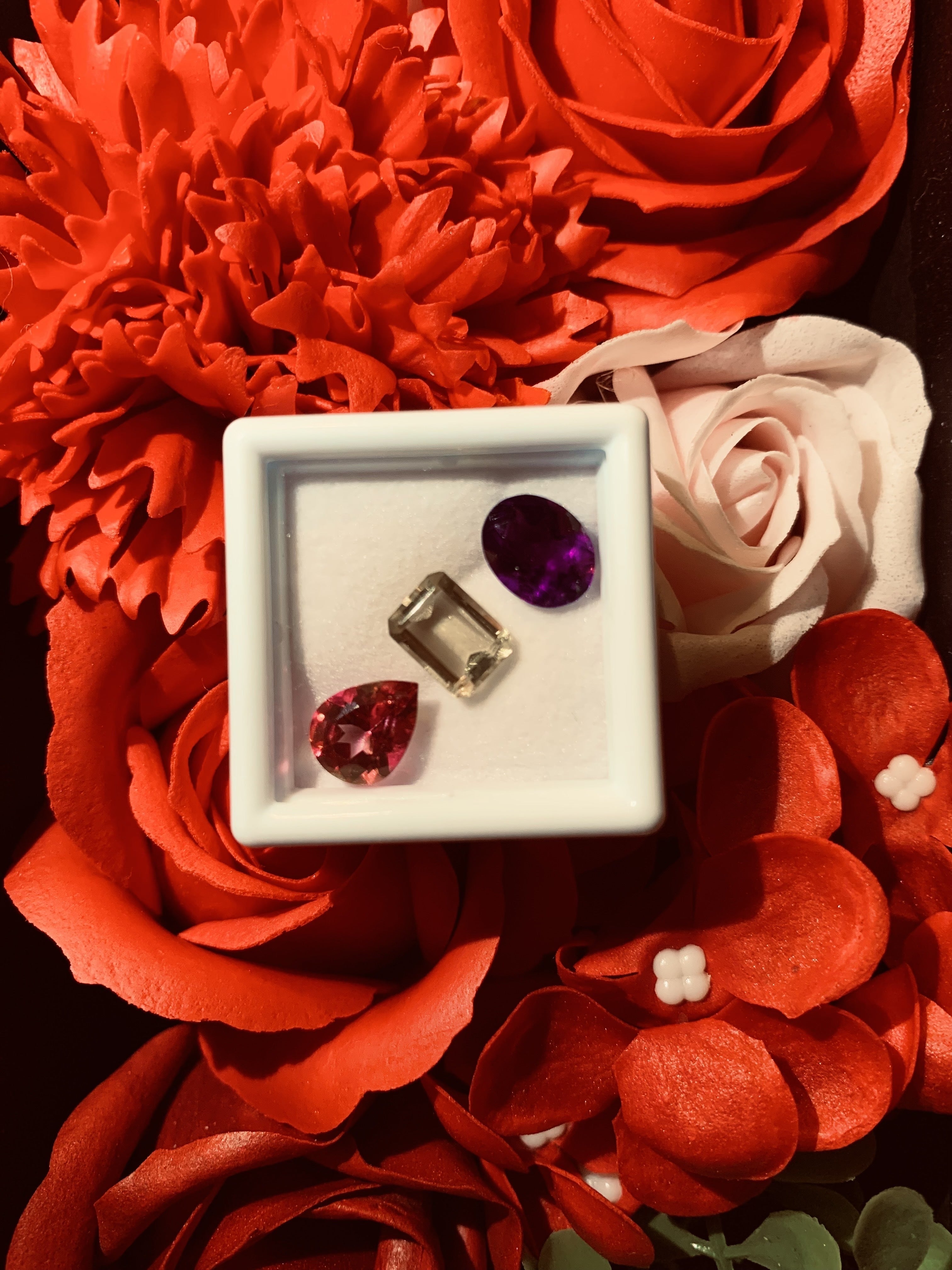 1ct以上のミスティックピンクダンビュライト・ゴールデンクォーツ・アメジストを3点詰め合わせました!!当社の店頭価格24,000円ですが、ほんの少しカケや内包物などがある為こちらの価格で限定個数で掲載させて頂きます!!!!