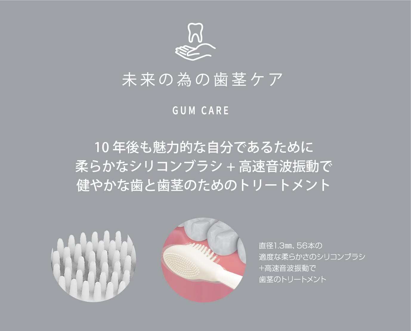 歯茎にやさしいシリコン素材のブラシで、歯茎のマッサージを行い、ケアが行えます。