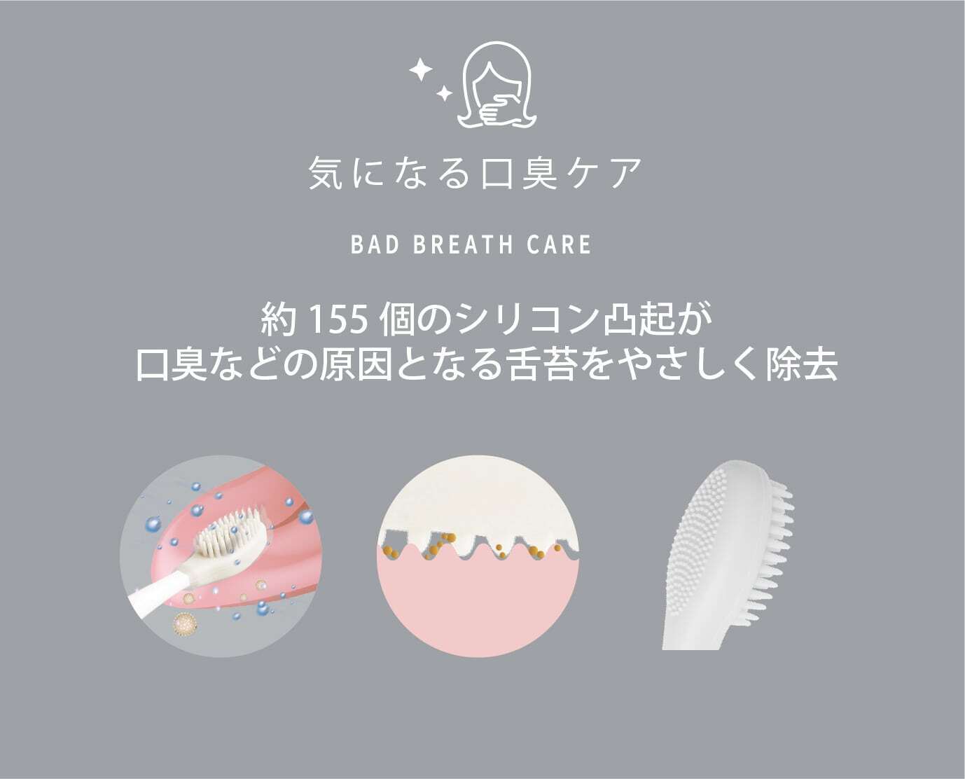 やさしいシリコン素材で約155個の凹凸部分が舌を傷つけず、口臭の原因となる舌苔を除去します。細やかな凹凸部分が舌に溜まった舌苔をしっかりかき出します。