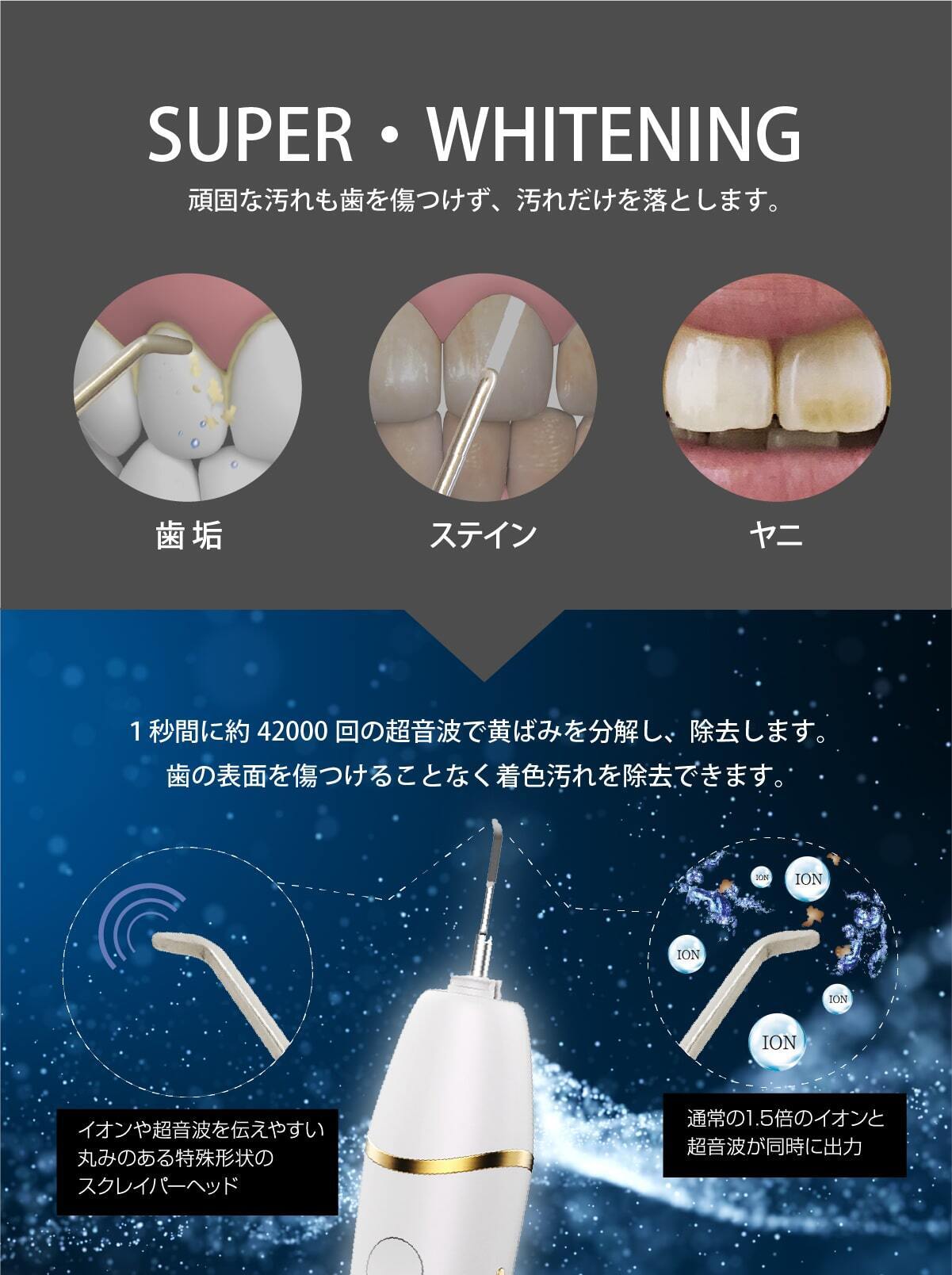 SHINY CAVITECHで採用しているイオン超音波(ultrasonic )振動技術はわずか10秒で黄ばみを分解します。さらに、SHINY CAVITECHのultrasonic scraper は安全性が高いため安心してお使い頂けます。