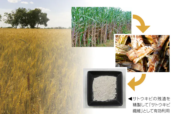 植物性の原材料においても、痩せた土地でも少ない水で生育するライ麦の使用や、砂糖を製造する過程で発生したサトウキビの残渣から、不溶性食物繊維が豊富なサトウキビ繊維を生成して利用するなど、その時々でできることを着実に進めてまいりました。