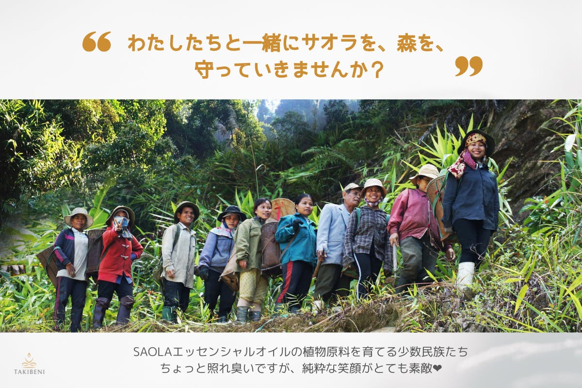 日本にいる皆さんにSAOLA®エッセンシャルオイルを使って頂けることは、アロマを楽しんで頂くだけでなく、ベトナム少数民族たちの生活を支えてもらうと同時に、人の為・動物の為の森の多様性を守り、持続可能な将来を一緒に作っていくことになります。