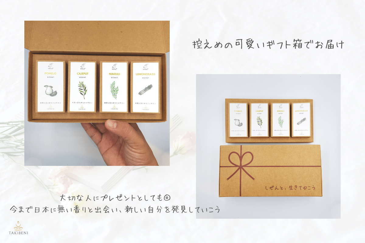 しかも、可愛いボックスでお届けしますので、香り好きの大切な方へのお届けもできます。発送の際にメッセージをつけたりしたい時はどうぞ備考欄にお気軽にご記入ください。