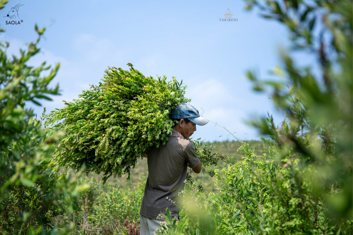 SAOLA®エッセンシャルオイルを企画した理由は、山に住んでいる少数民族に安定的な収入を与え、山の狩猟から脱出してもらいたいからです。そうすると、山に生息しているサオラたちも人間の狩りから逃れられ、生き残れるようになります。