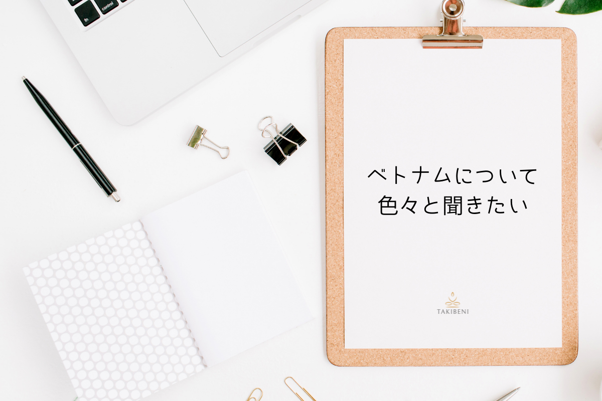 ベトナム出身・日本在留歴15年以上のタキアミと申します。今年、コロナ禍の中、人生で一番大きな決断をしました。それは、新卒で入って8年間務めた会社を辞め、夢である自分の会社TAKIBENIをスタートさせました。ベトナム(BE)と日本(NI)をつなげ、多くの喜び(多喜ーTAKI)を実現することを、会社名と会社のミッションとしています。