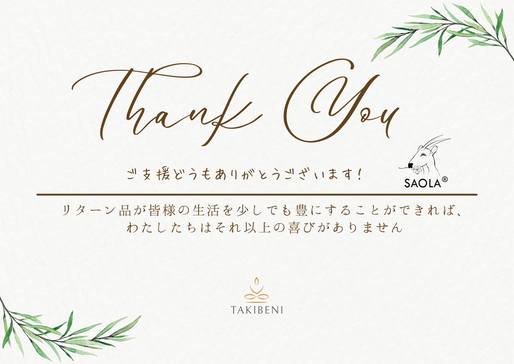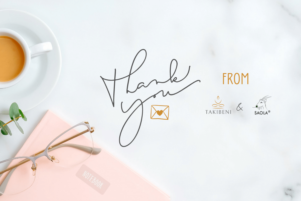 ① 《リターン品無しでただただ応援したい方》 TAKIBENIとSAOLA®開発チームからお礼のメール 【1000円】