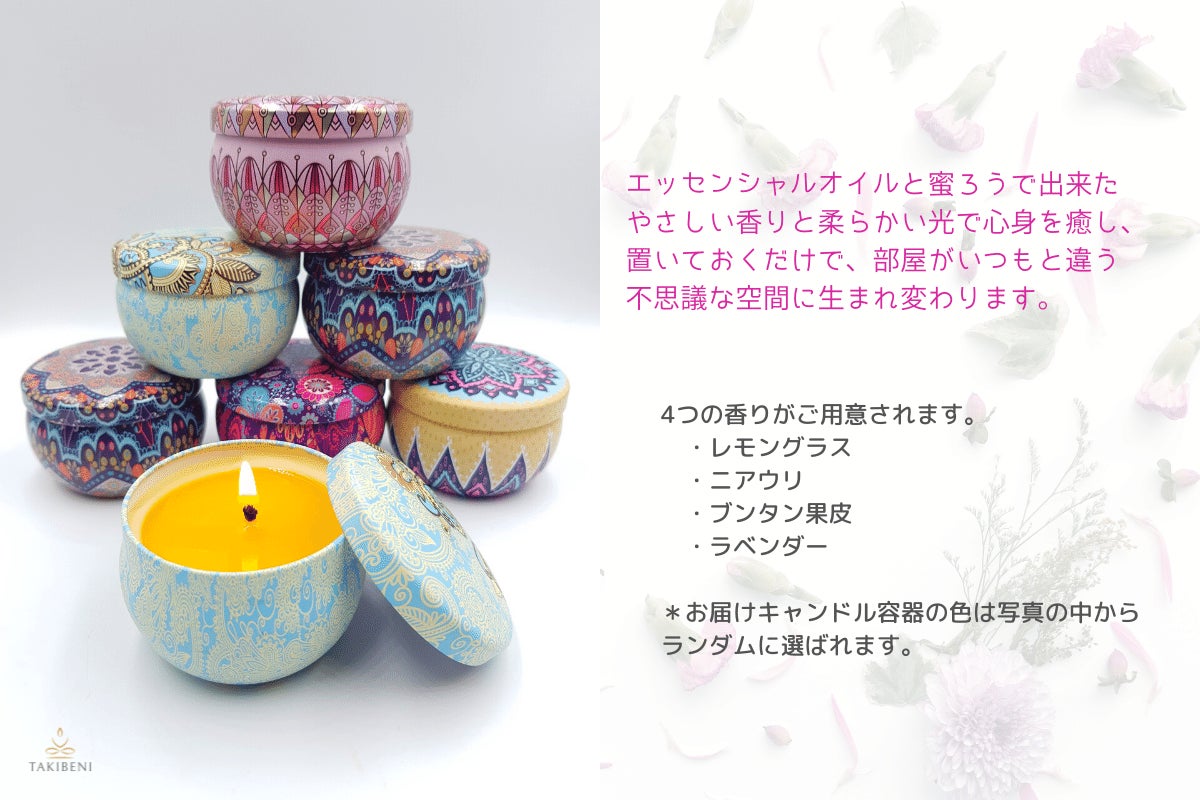 エッセンシャルオイルと蜜蠟で出来たアロマキャンドル4点セットです。日本に無い香りのコンビネーションなので、新鮮な感覚を与えてくれます。