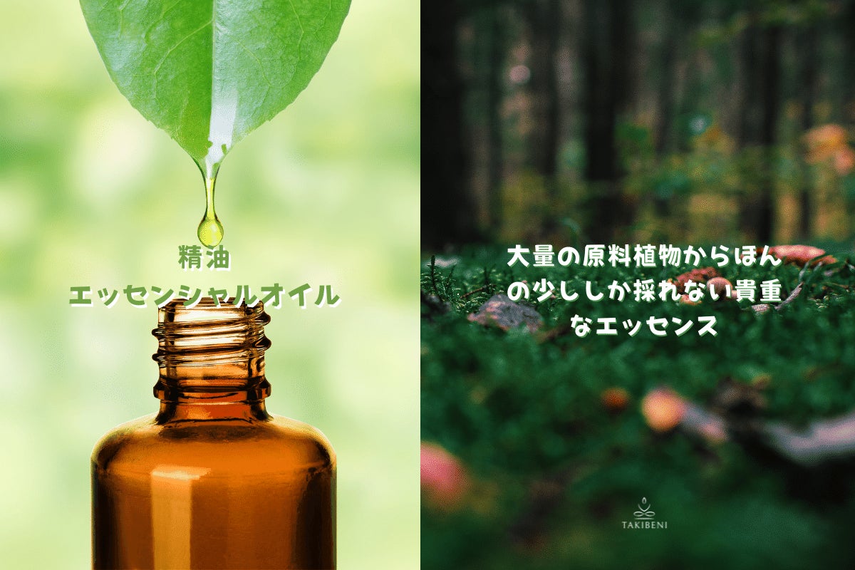 人工香料、合成フレグランスは化学実験室で大規模で比較的に安易に作れるのに対して、精油は大量の原料植物からほんの少ししか採れない貴重なエッセンスなので、原料価格も手間も全然異なるのです。