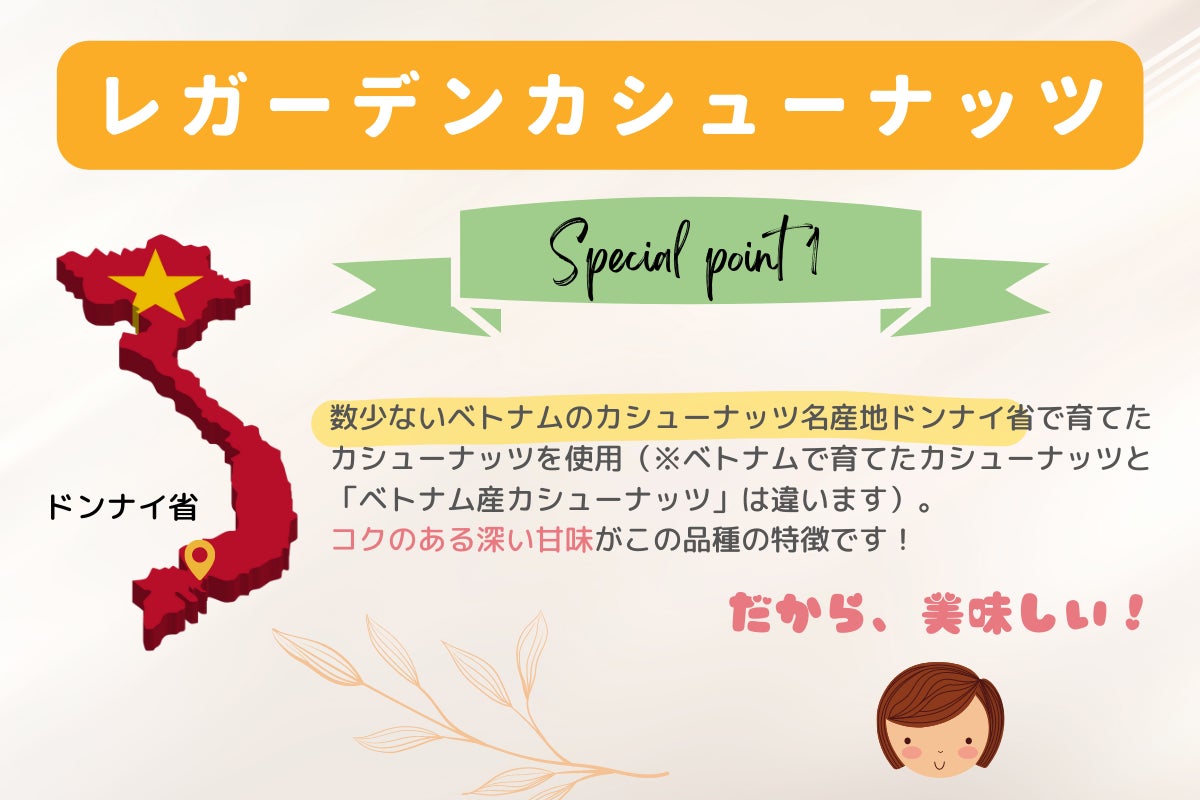 日本には既にたくさんのベトナム産カシューナッツがありますが、こちらのレガーデンカシューナッツはそれらと違います。