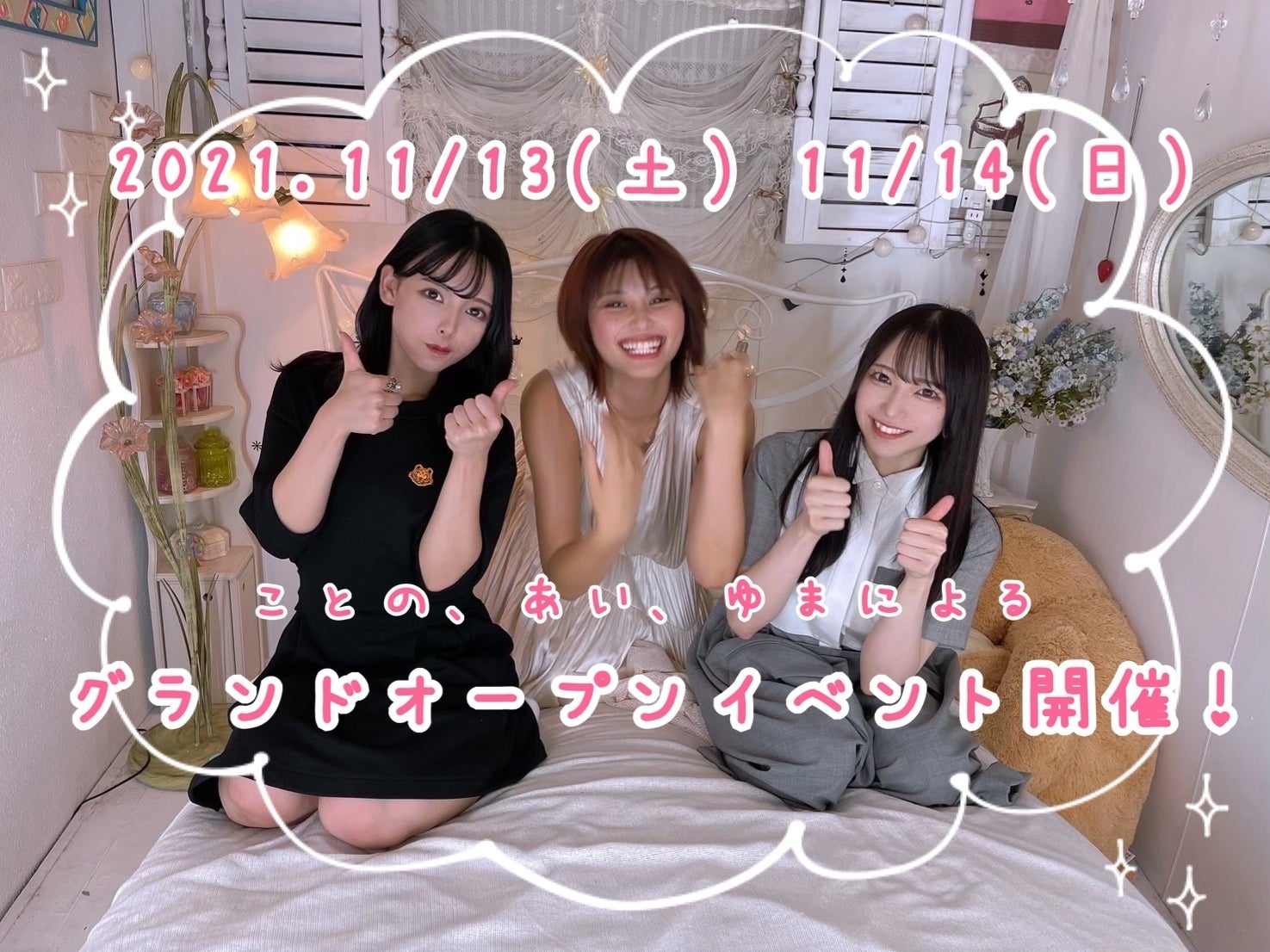 ことの、あい、ゆまによるグランドオープンイベント開催です!スタッフアミューズメント解禁日になります、シャンパン特典があったり、特別衣装を着てみたり、みんなで楽しめるイベントたくさん考えてます!たくさん飲んでたくさんチェキを撮って、一緒に開店をお祝いしたいです!