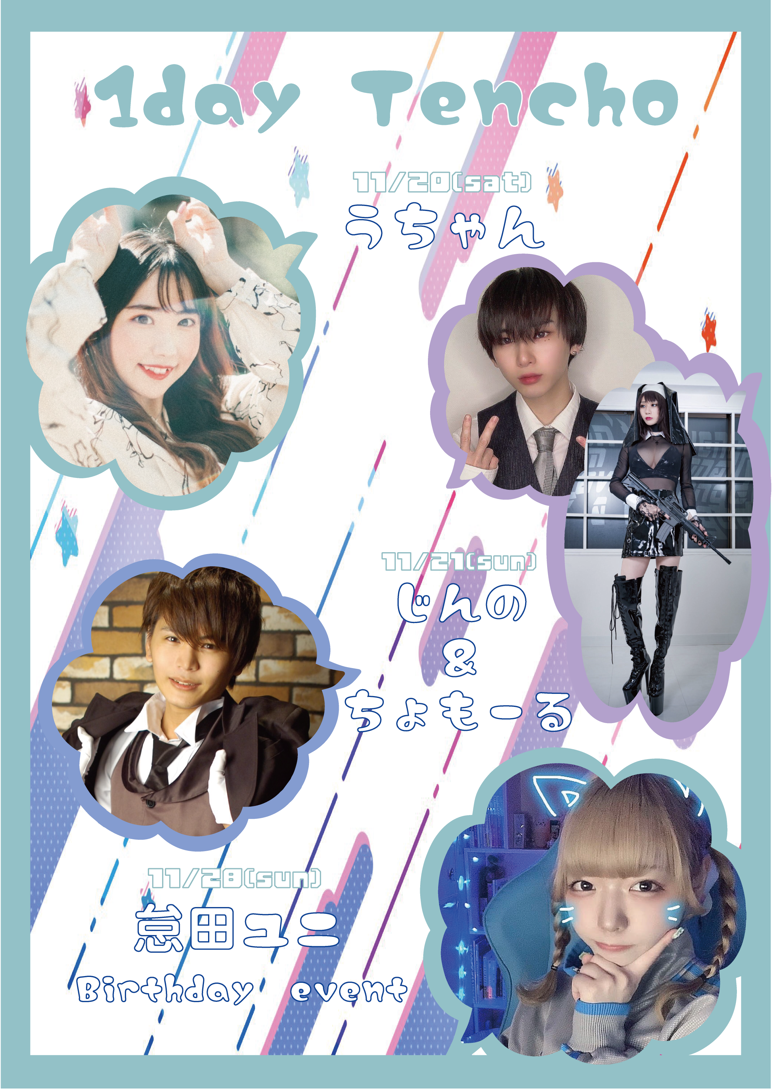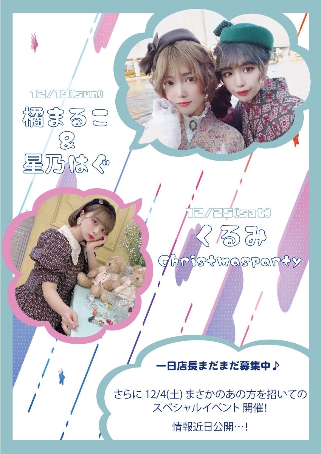 その他にも、アイドルやコスプレイヤー、舞台女優、インフルエンサー等、11月と12月だけでも様々な方のイベントを予定しております!詳細はHPに記載しておりますので是非チェックしてみて下さい♪