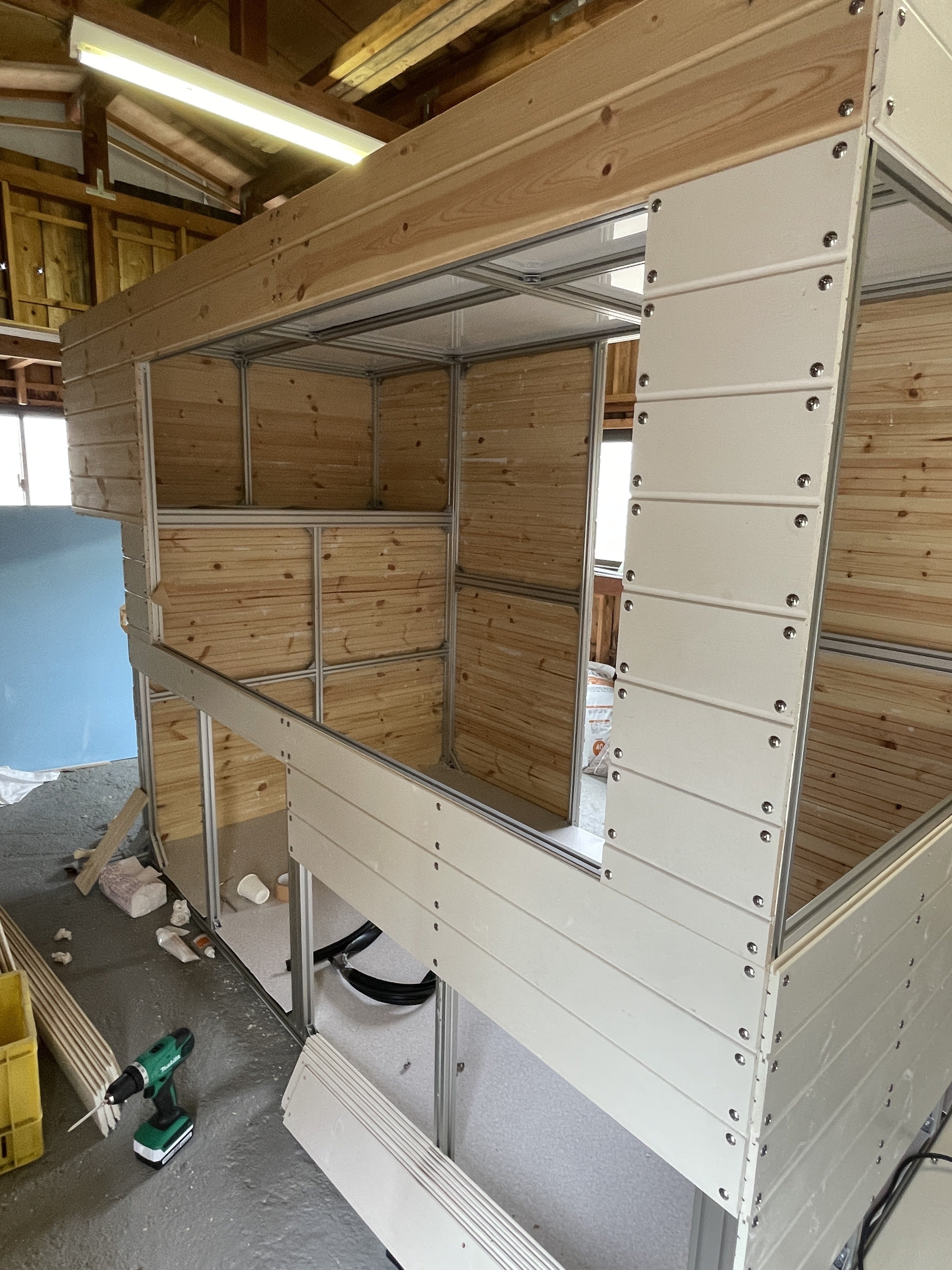前回は骨組みが完成し、外壁を少しだけ張った状態でしたが…
