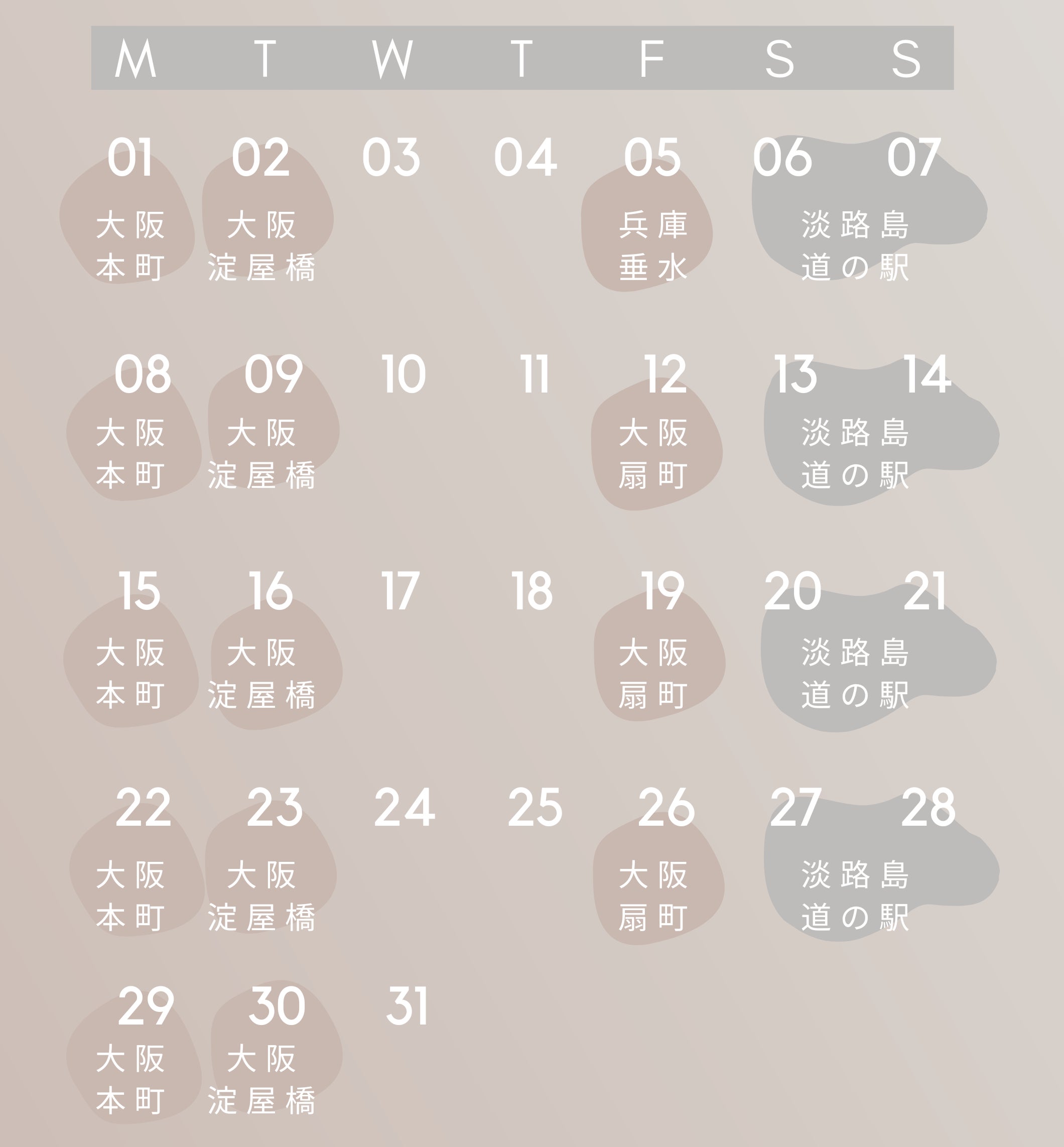 毎週月曜日は大阪市 本町に出店します。