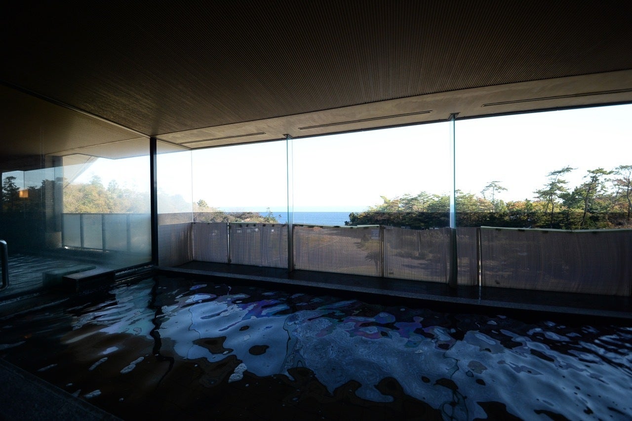 オーシャンビューの温泉。泉質もすばらしくリラックス効果は絶大です