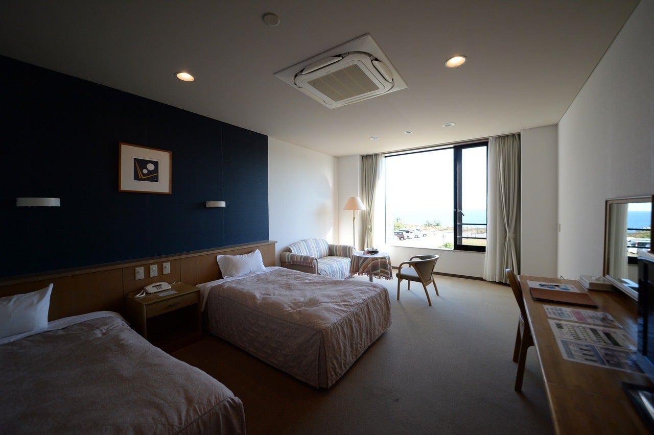 三崎公園での運動を取り入れて宿泊される方も増えてきました。こちらは人気の洋室の写真です