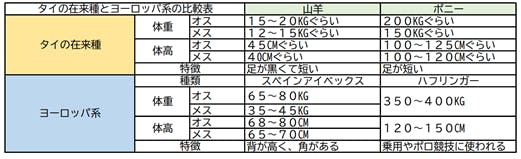 ヨーロッパのポニーや山羊は肉付きが良く、食肉としては1頭当たりで多く採れる代わりに、気候や風土がタイとヨーロッパでは異なるため、多くの薬も必要といわれています。
