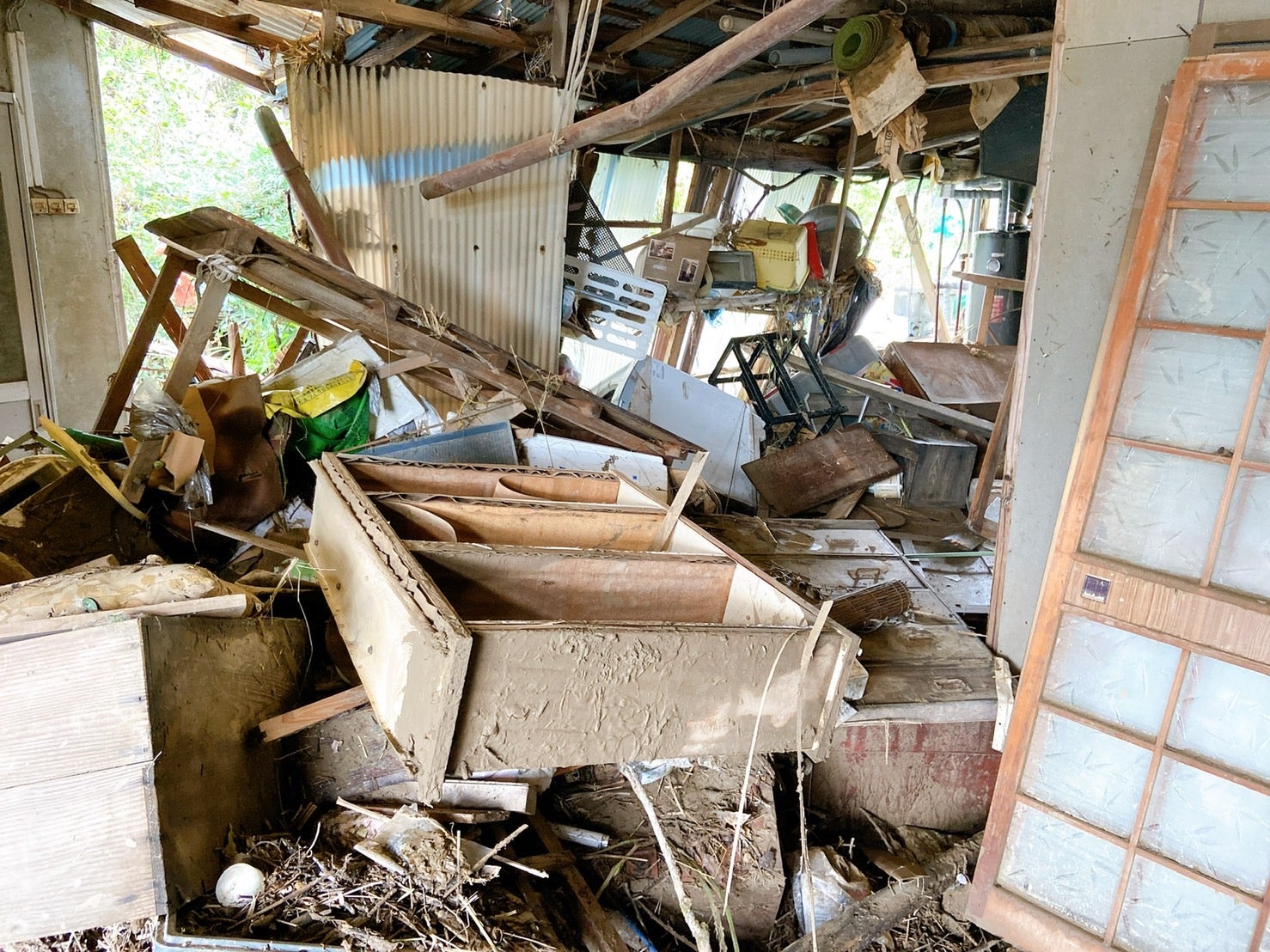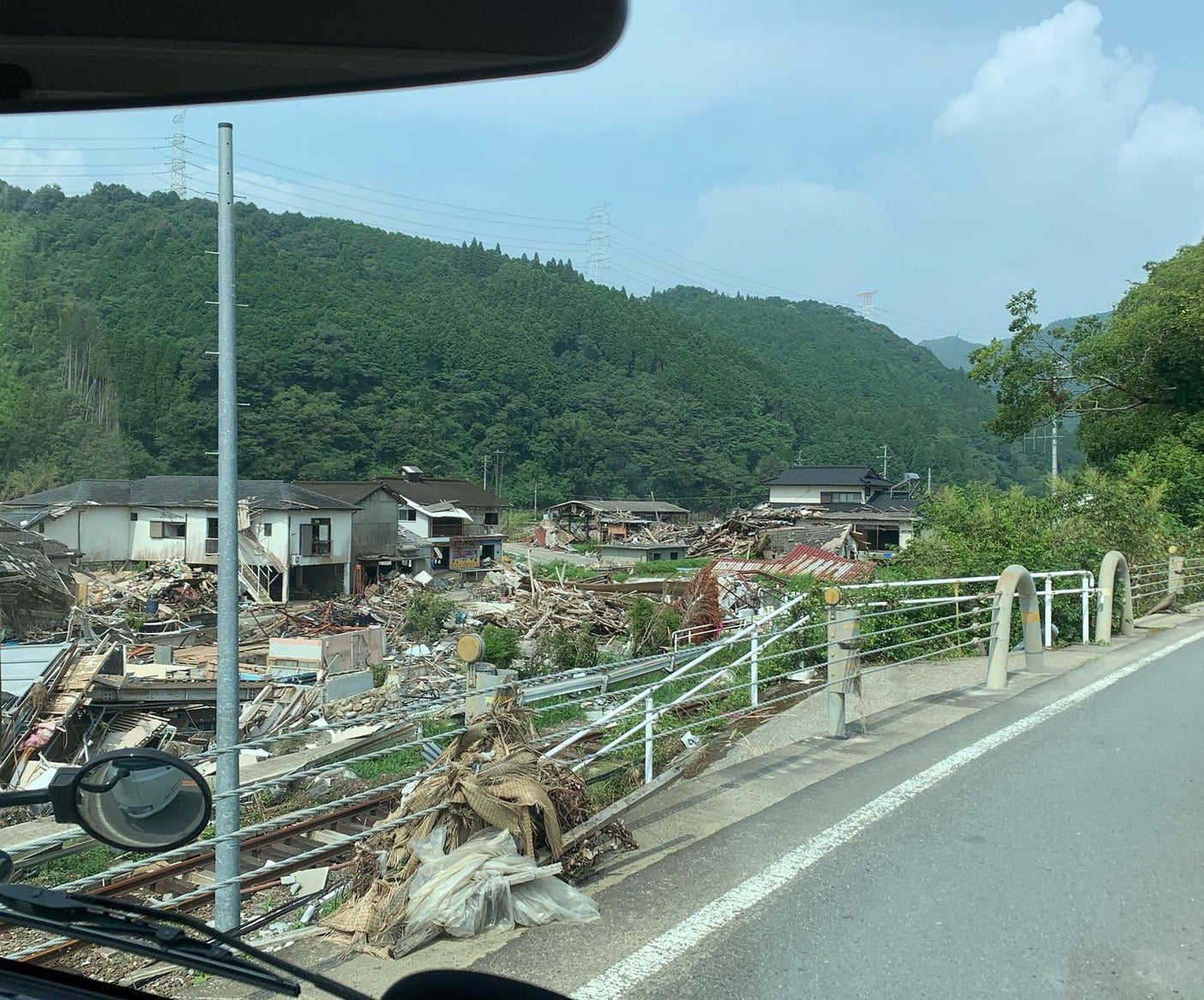 多くの企業様より支援金を拠出していただき、現地訪問が実現できました。被害から1年以上たつのに町の中の至る所に骨組みだけを残した家屋、建物が撤去された更地、再建できていない温泉旅館、球磨川に巨大な流木が川岸に引っかかったままなのを目にしました。さらに、観光地なのに人通りはまばらでした。