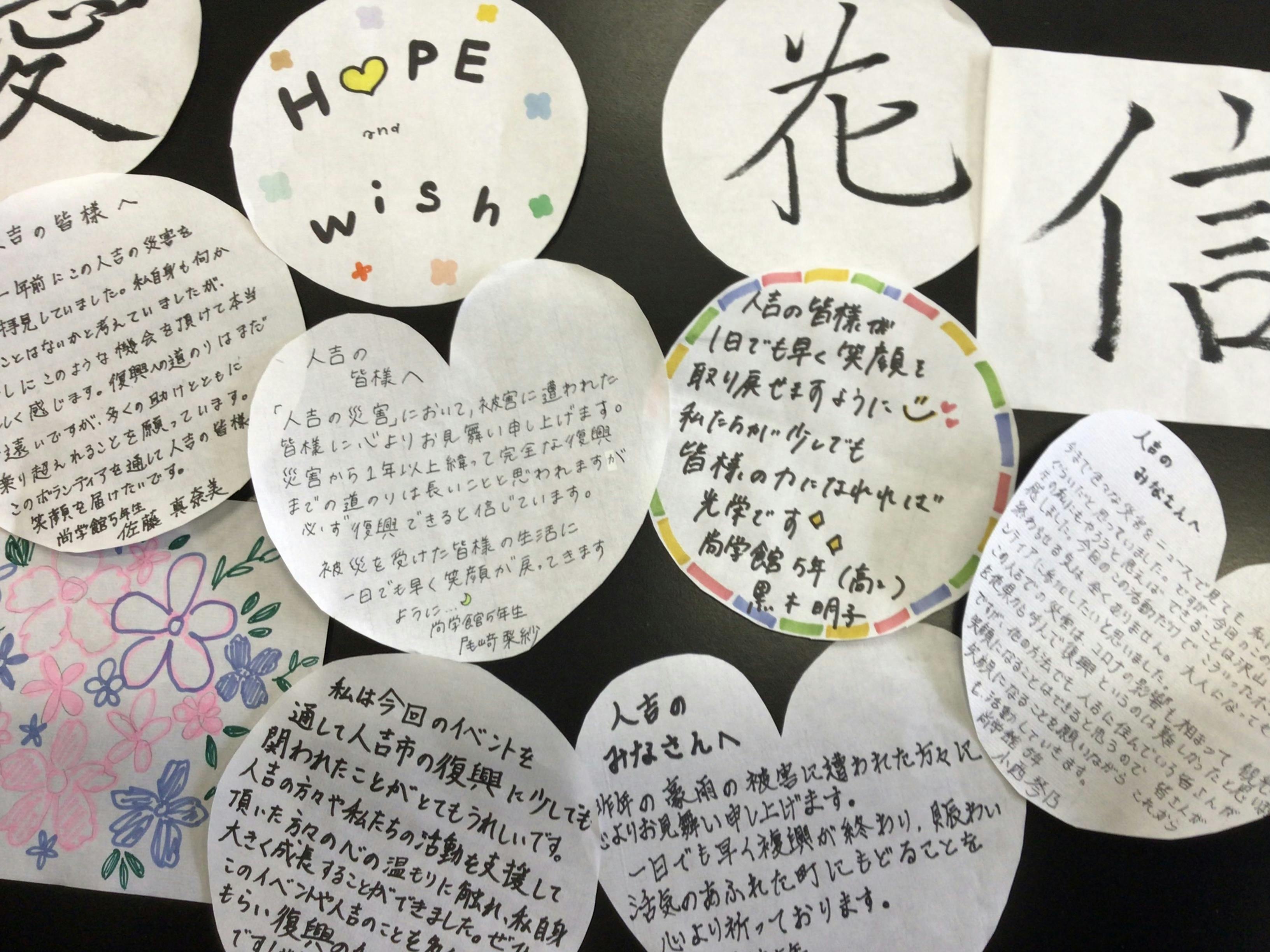 ・尚学館人吉市ボランティアチームの寄せ書きを人吉市へ送る