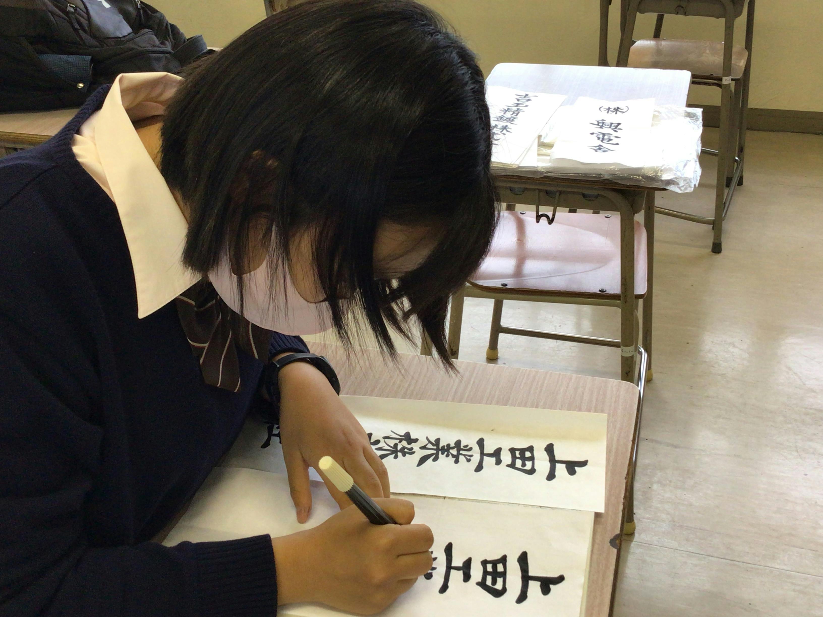 延岡商工会議所を通してご支援いただいた企業様名は和紙に企業名を書いて、和傘に貼り付けて会場で飾ります。腕に覚えのあるメンバーが心を込めて清書いたします。夜には和傘をライトアップする予定です。