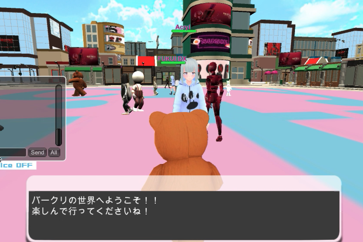 またバーチャル空間ではショッピングのみならず、お友達と待ち合わせてちょっとおしゃべりするだけ、といった使い方もできます。友達と趣味のものを交換する場として使っても良いし、ちょっとした集会をひらく場として使うことも可能。