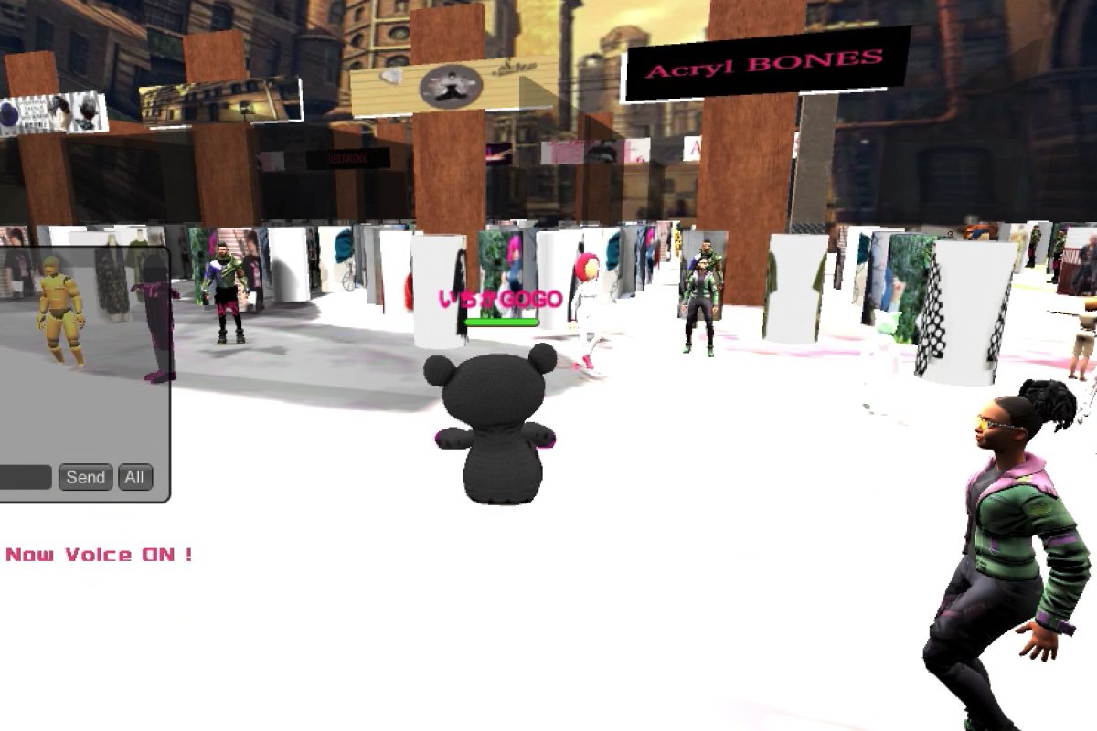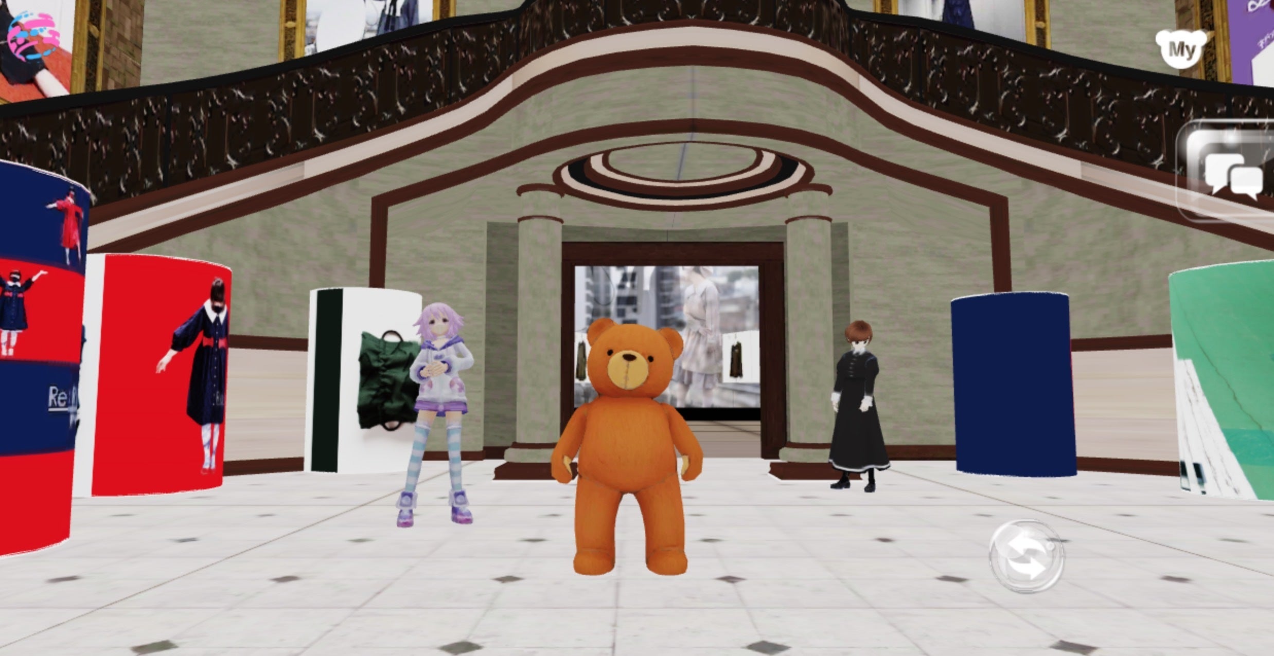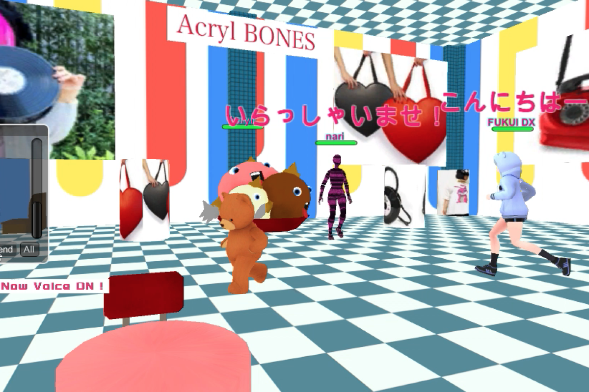 友達と同時ログインして音声通話やチャットをすることも可能。空間の中にはいくつかの店舗があり、友達と会話しながら様々なお店に立ち寄ったりと、まるで街に出て買い物しているかのような体験が出来ます。