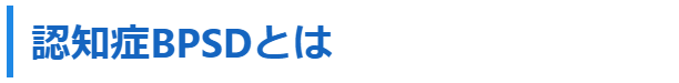 BPSDは行動・心理症状を表すBehavioral and Psychological Symptoms of Dementiaの頭文字による略称で下記のような症状があります。