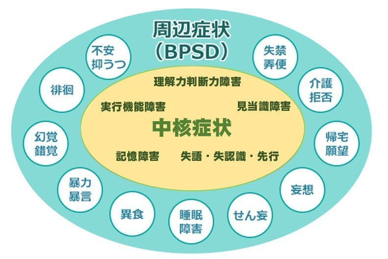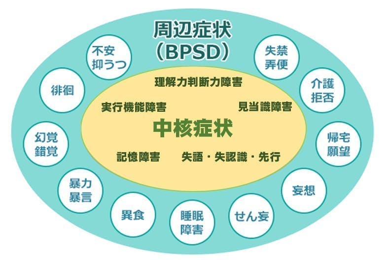 認知症には 「中核症状」と「行動・心理症状(BPSD)という、大きく分けると2つの症状があります。