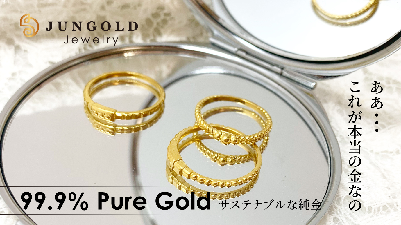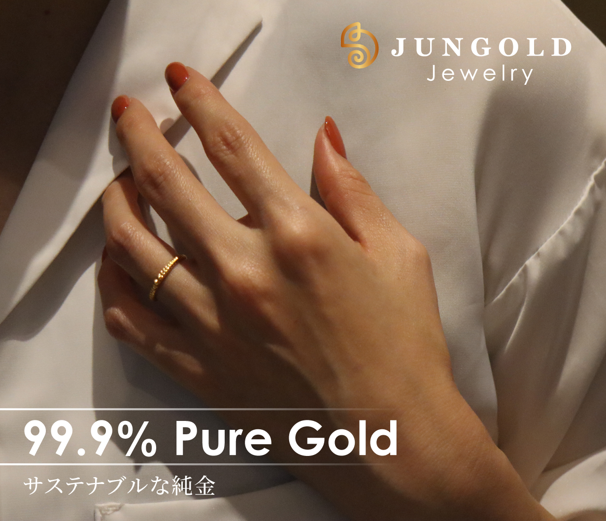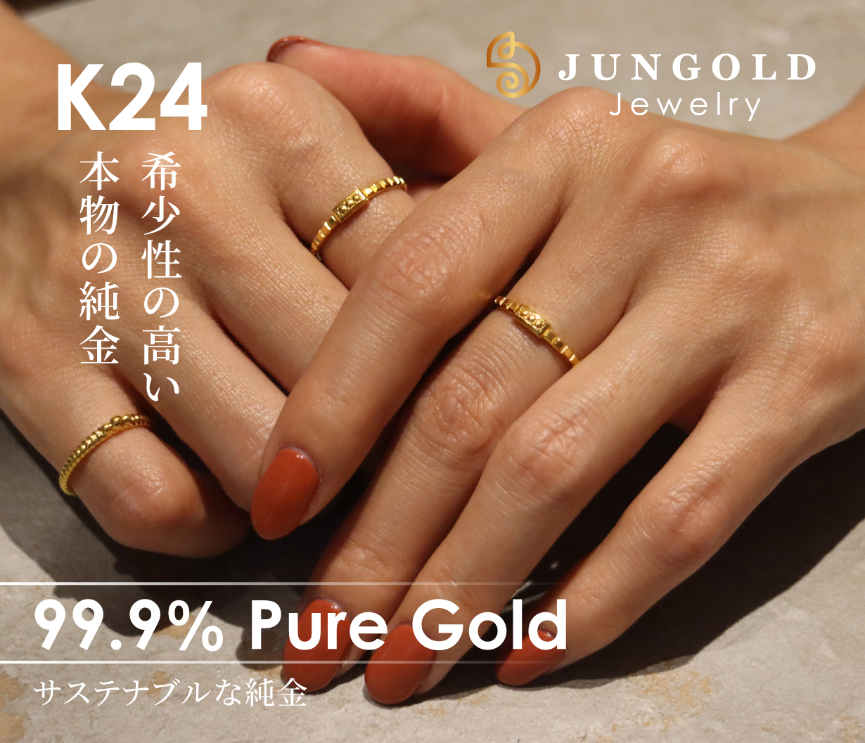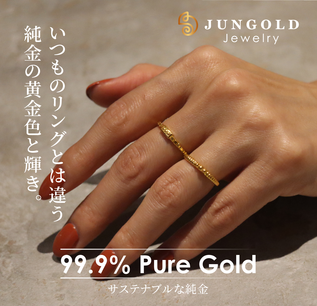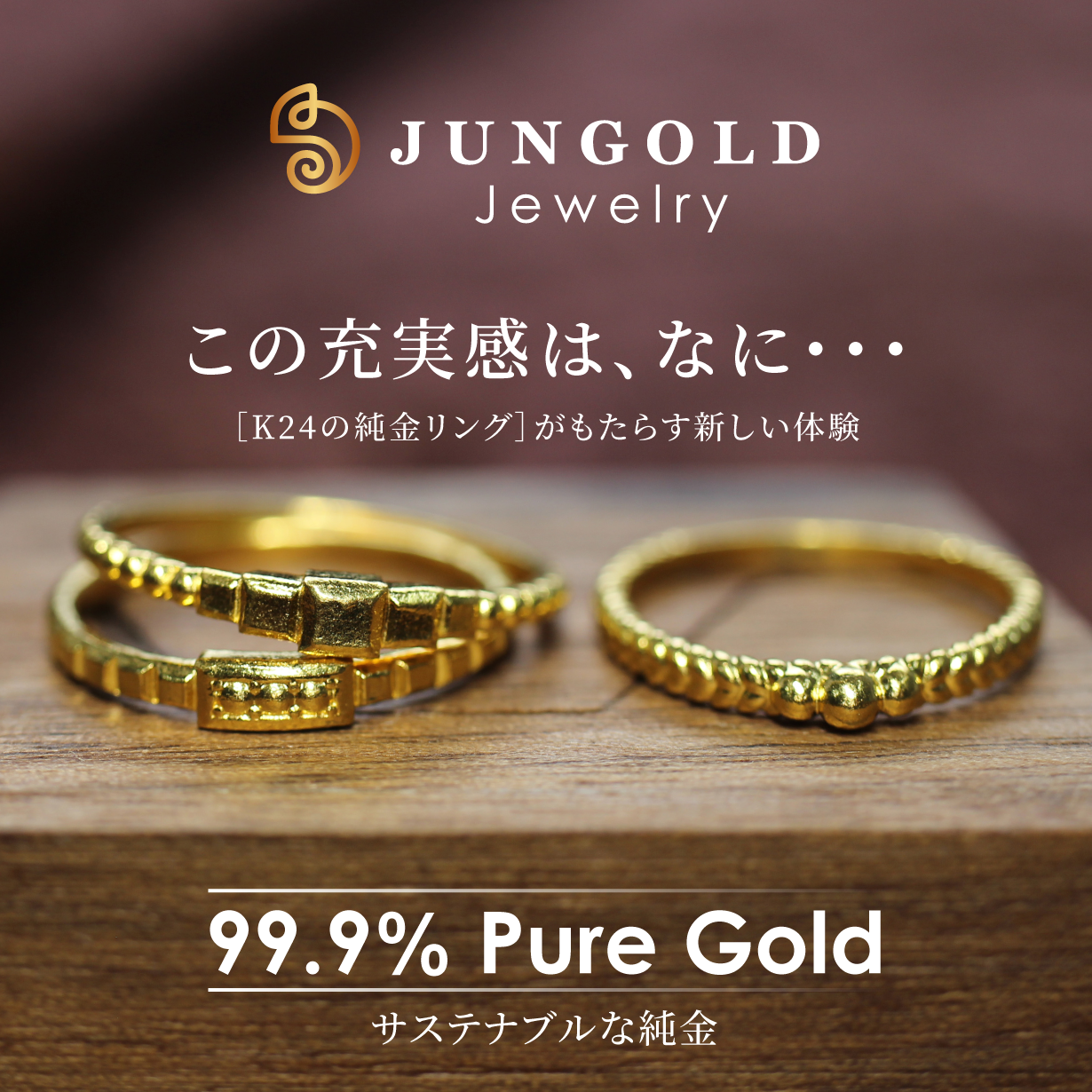 「JUNGOLD」から、純度99.9%の純金のリングが登場。K24のナチュラルな輝きをお届けします。