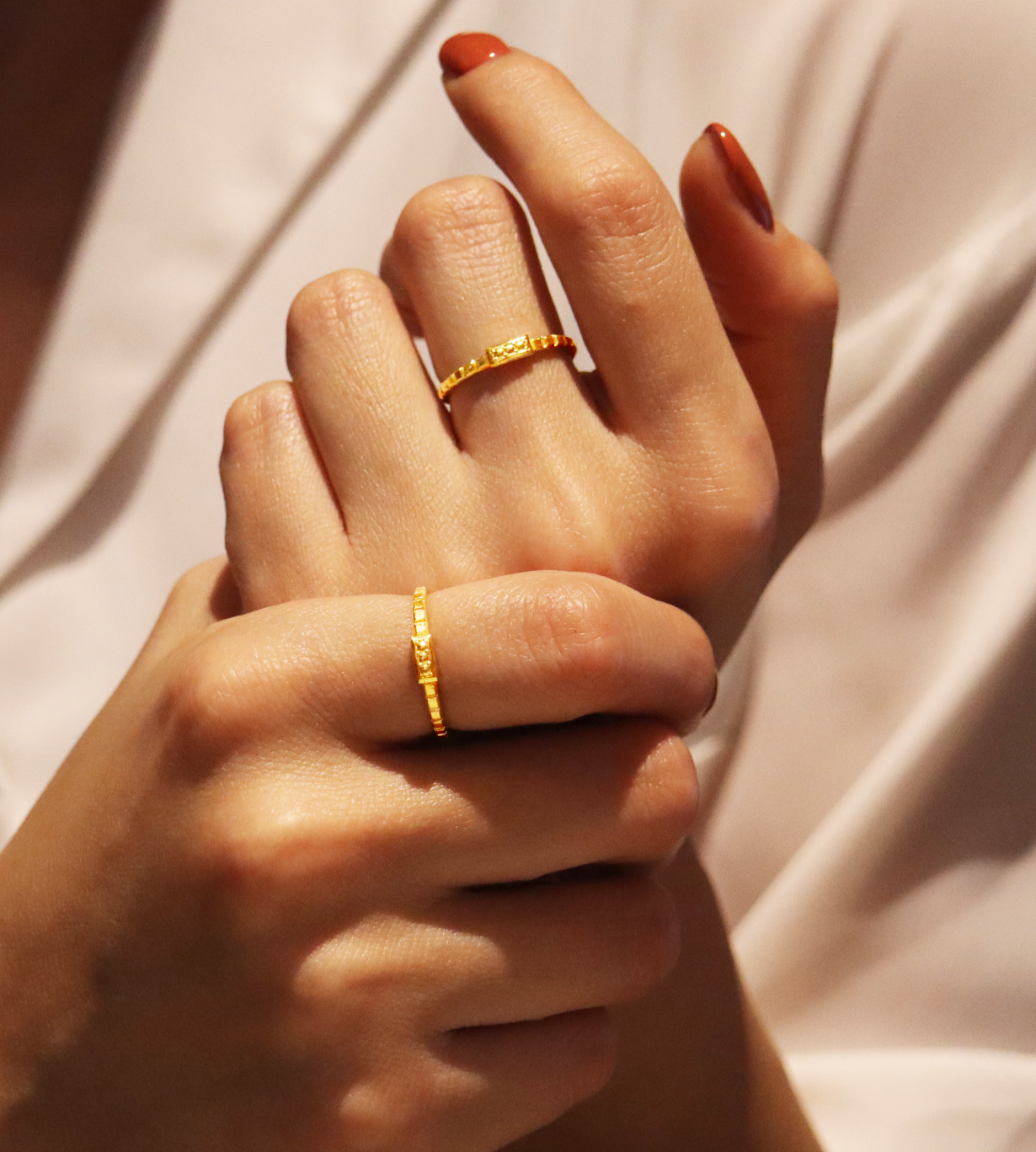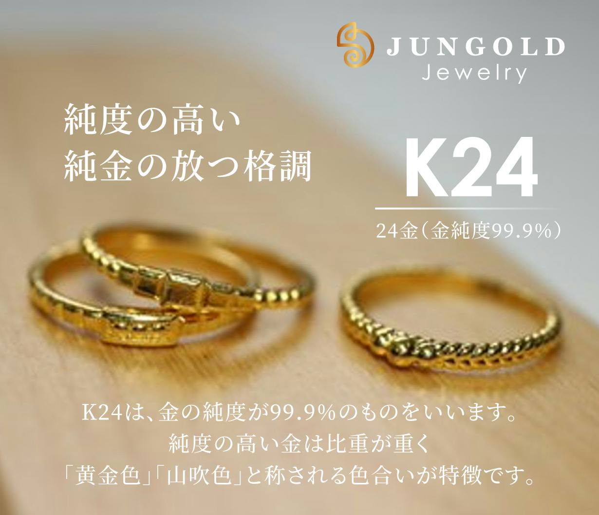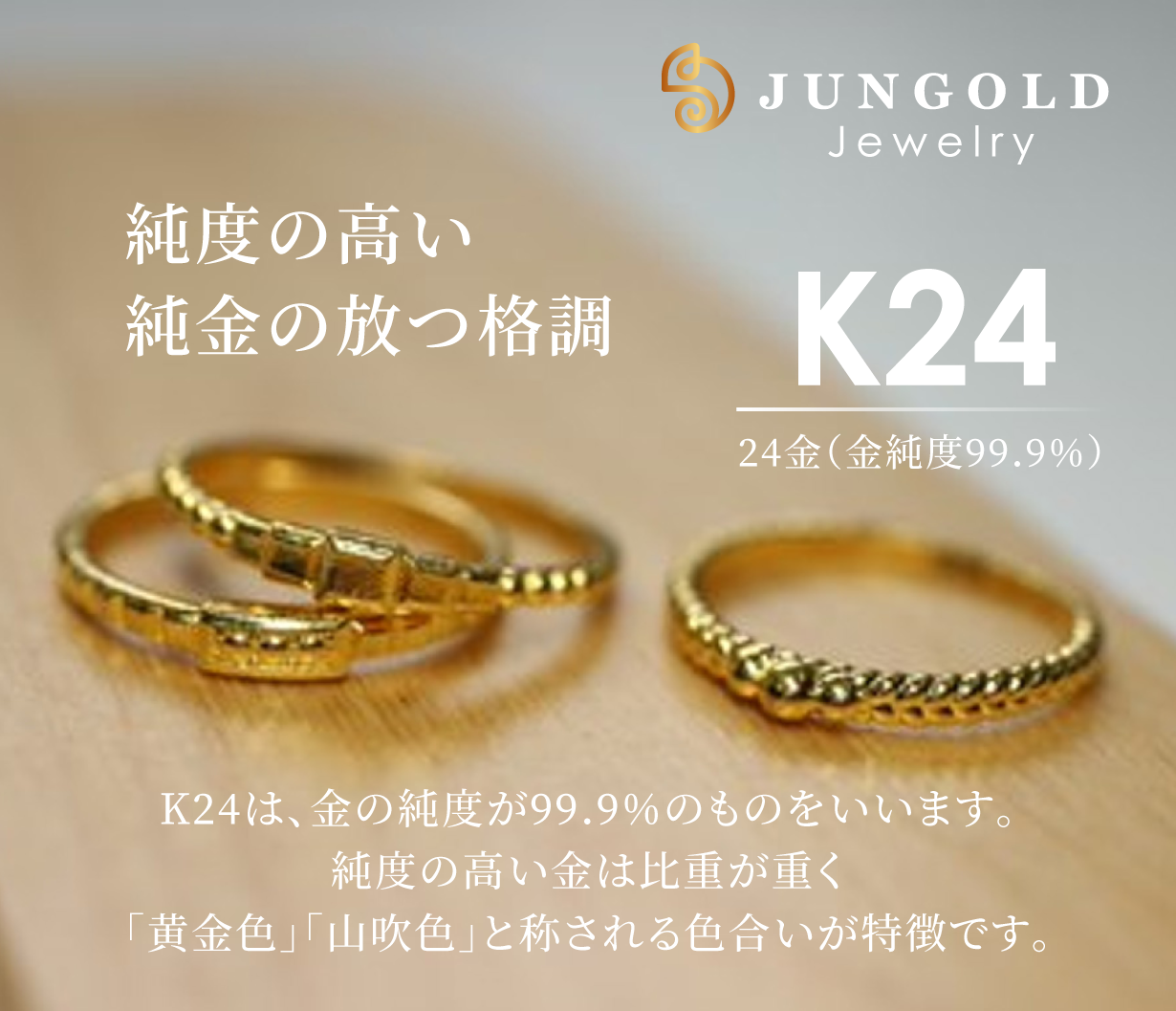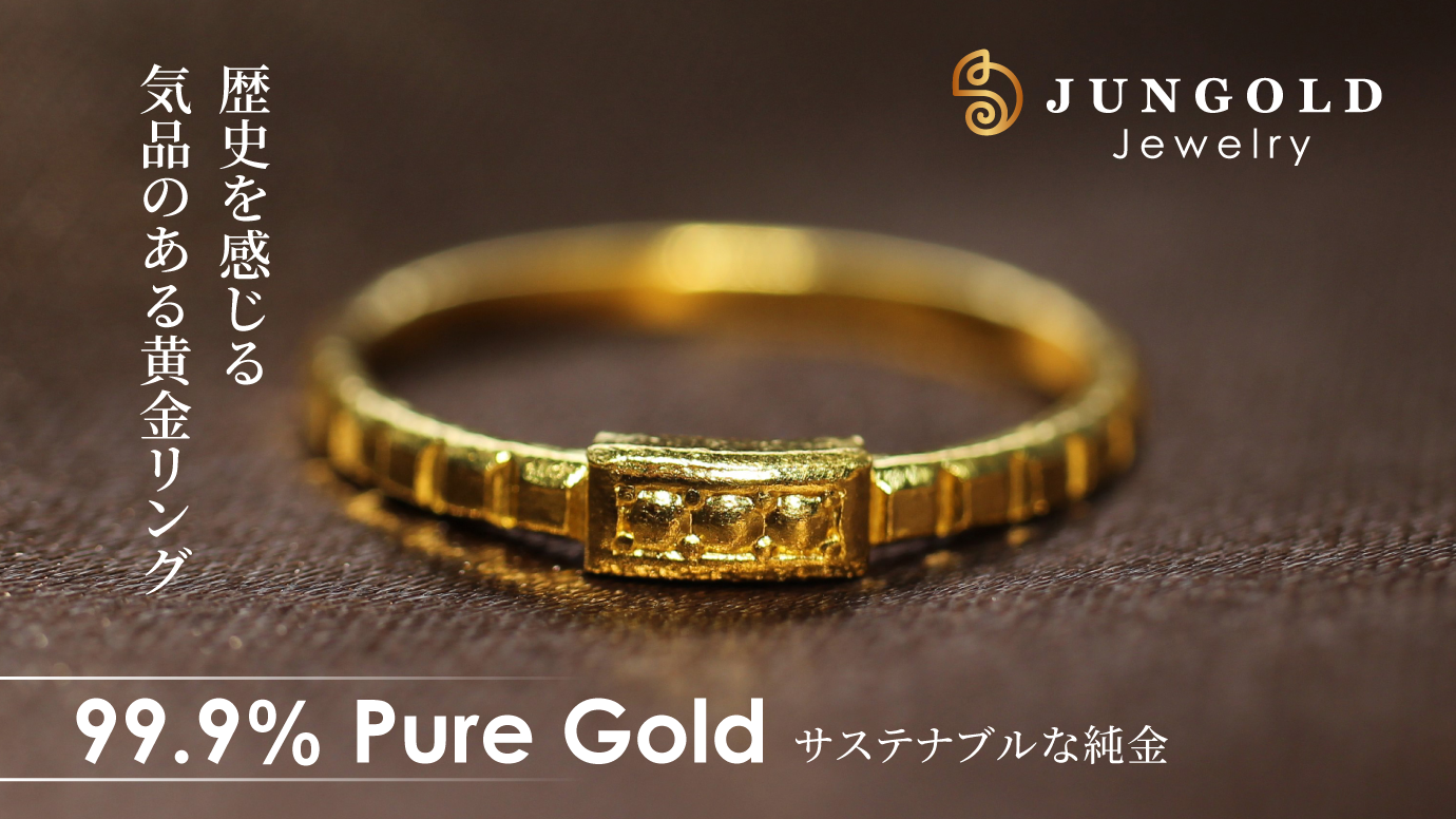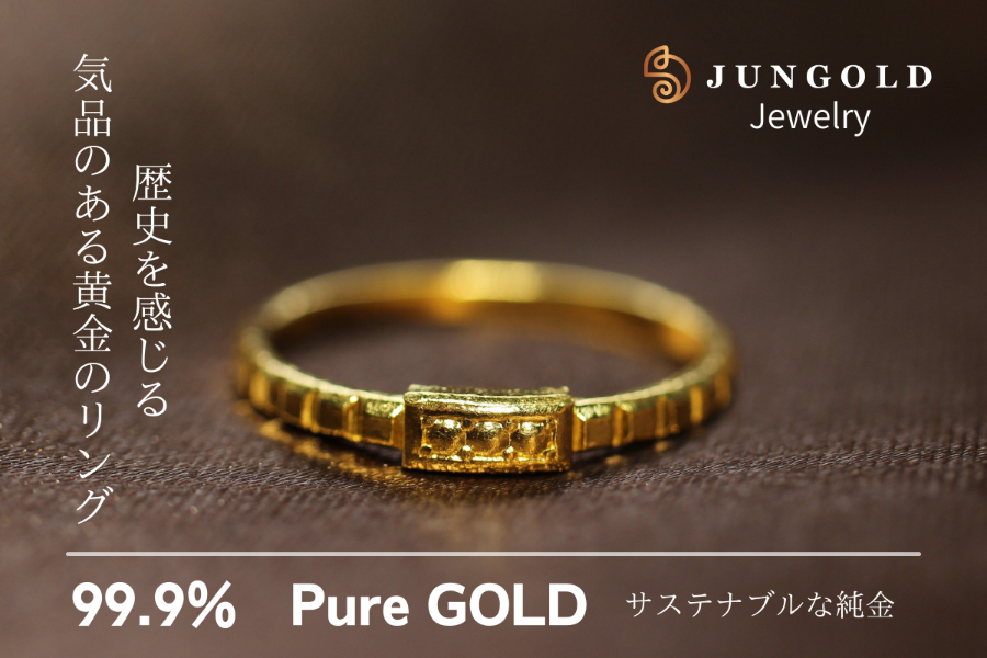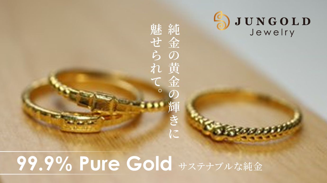 「JUNGOLD」から、純度99.9%の純金のリングが登場。K24のナチュラルな輝きをお届けします。