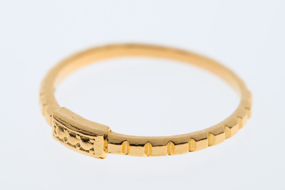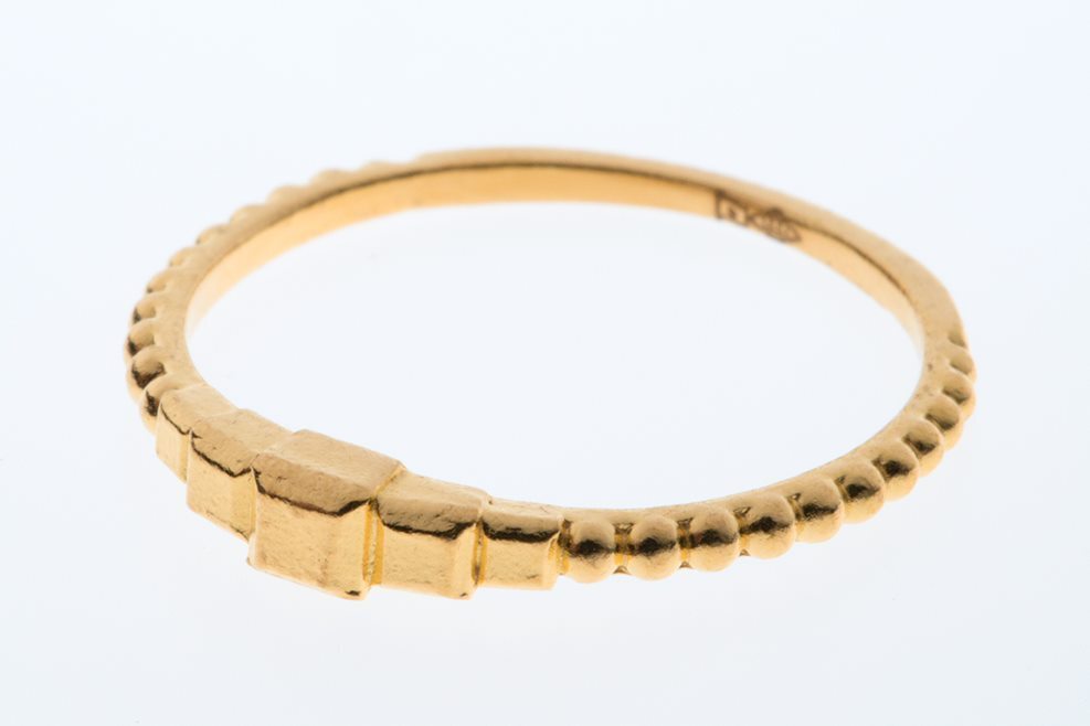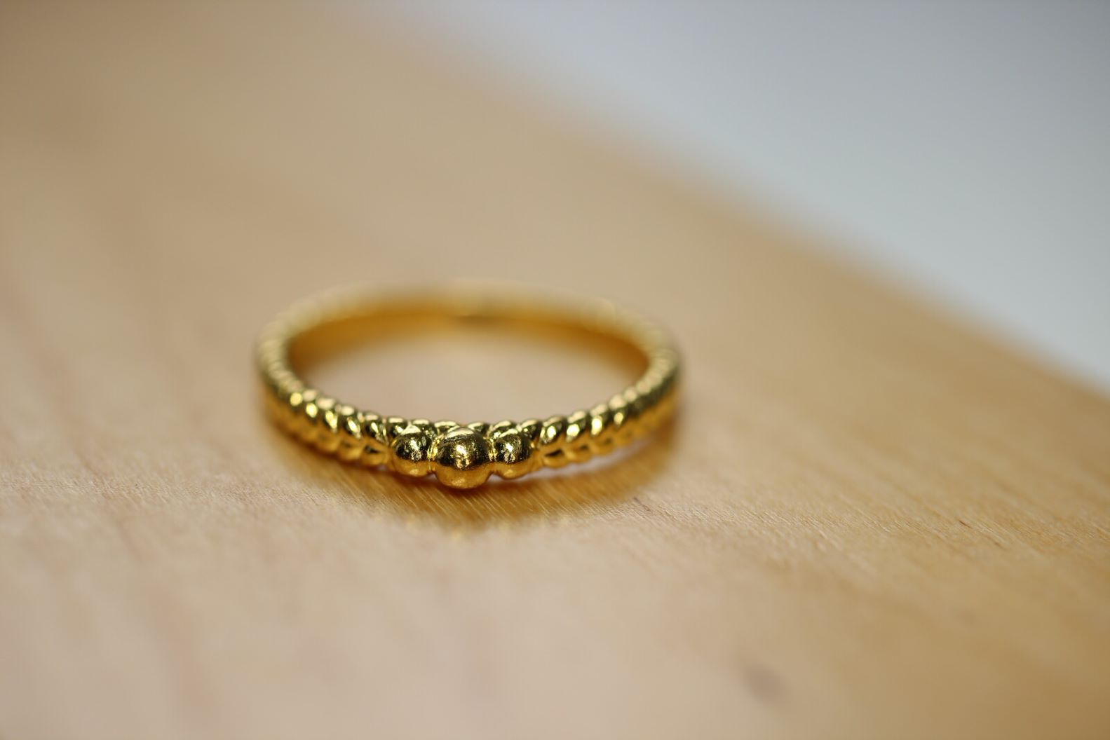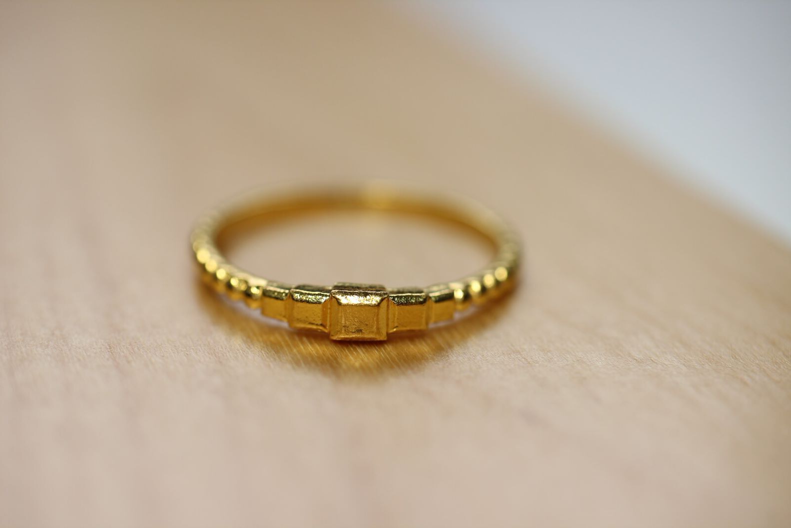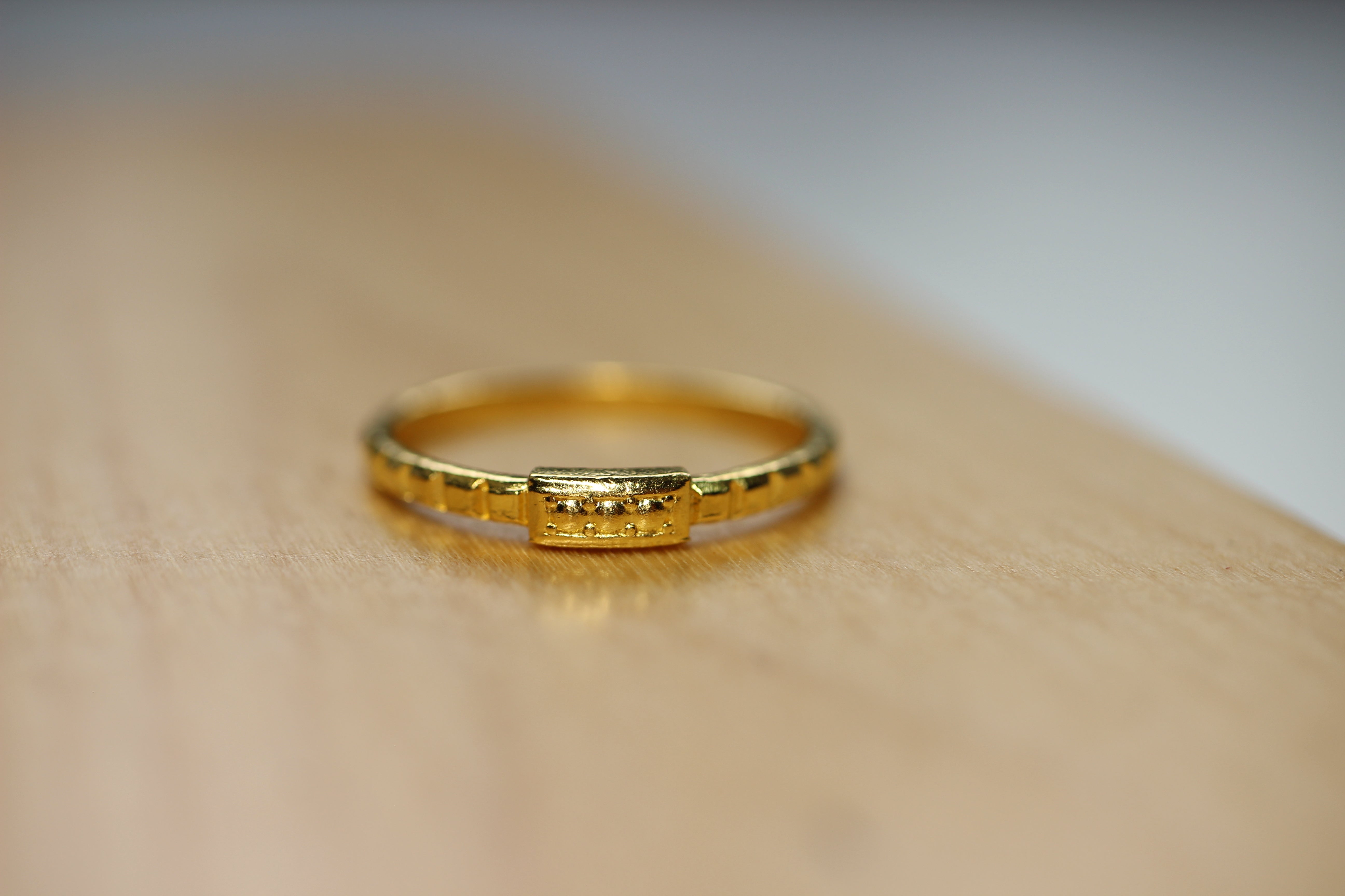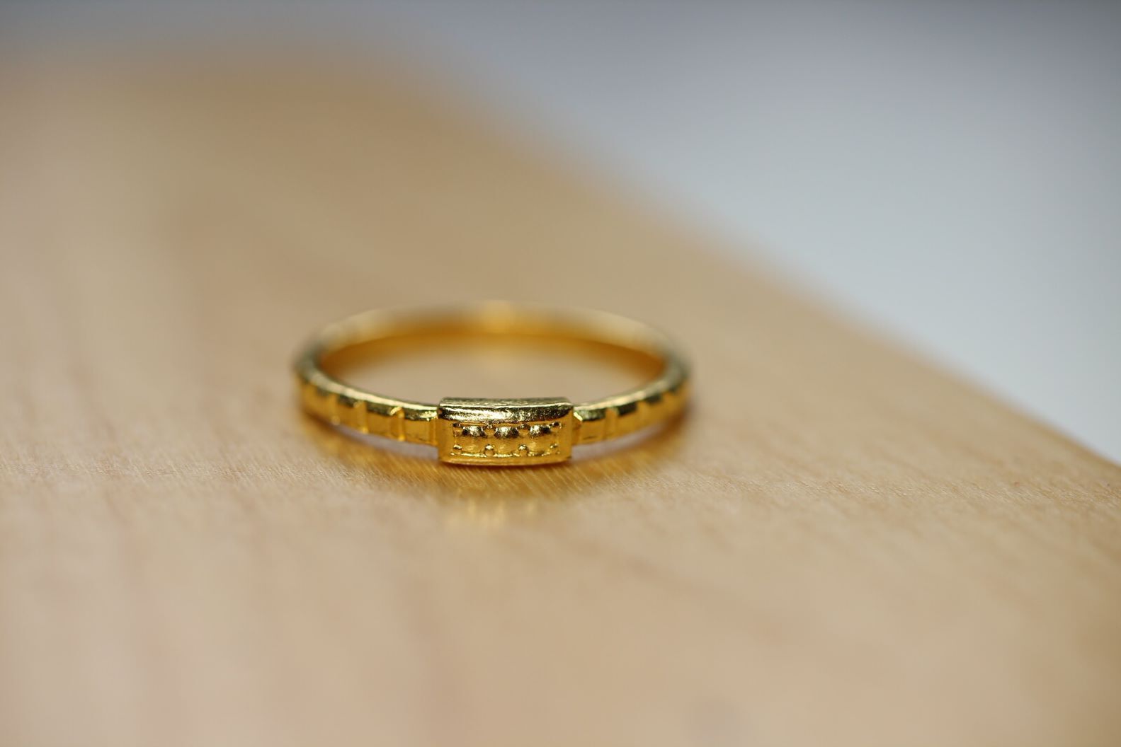 華奢で上品な、女性らしいデザインのリング。K24の山吹色の輝きは、付けているとその人の肌に馴染んできて、とても深い色合いに変化していきます。