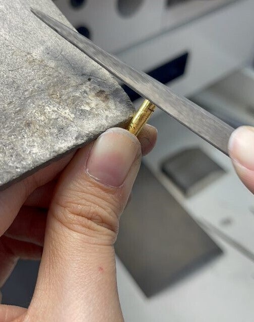 金本来の色味を損なわないようにするため、大量生産が可能なプレス加工ではなく、職人が丁寧に一つ一ひとつ鋳造で行い、研磨加工の「ナチュラル仕上げ」を採用。加工工程の技術レベルを上げたことで、純金だからこその暖かな黄金の色と光沢を可能にしています。