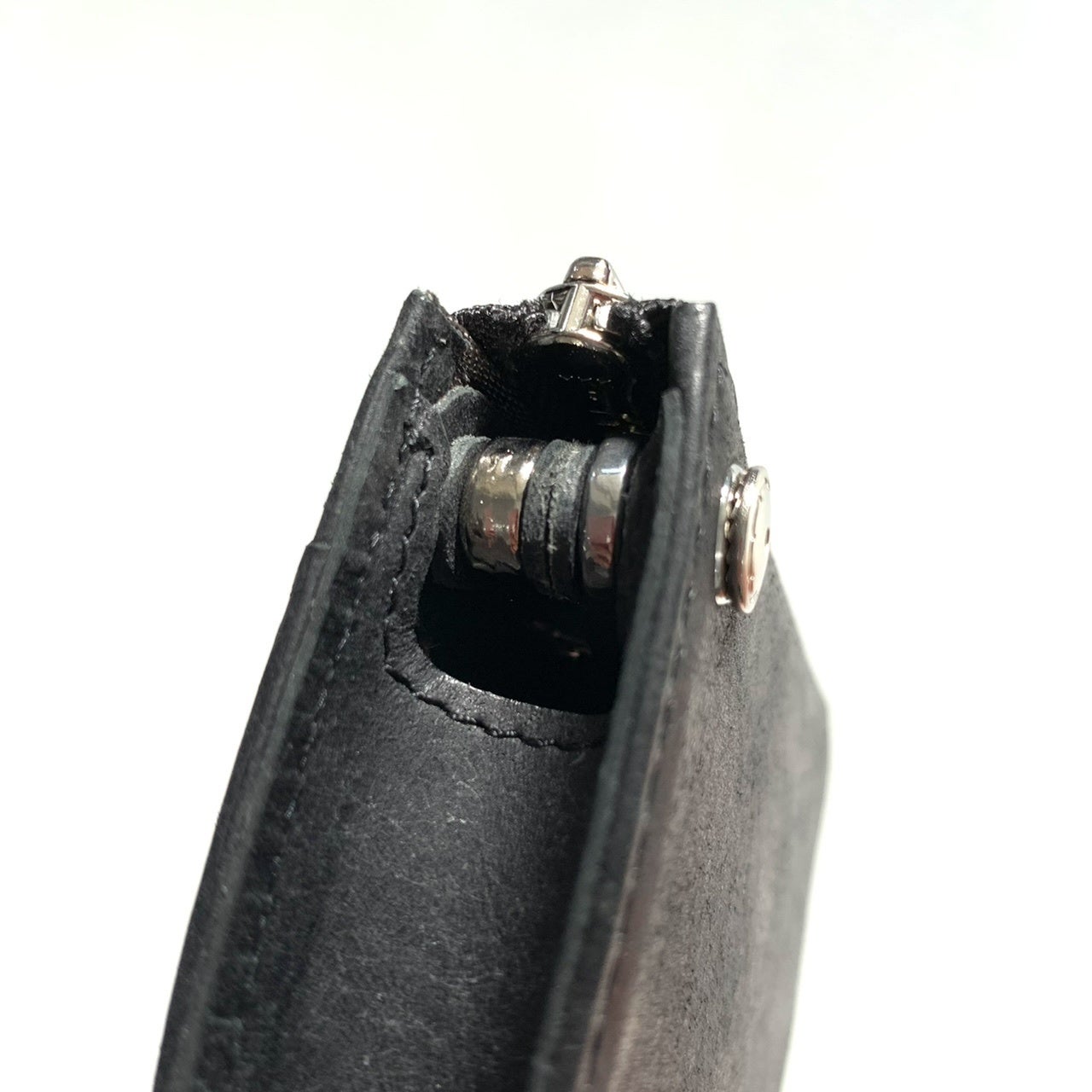 それを解消するのが例の革パーツなのです!!このパーツをカラビナを挟むように取り付ける事により、カラビナ同士のぶつかりやカラビナが左右にガチャガチャと動いてしまう現象を大幅に軽減する事に成功しました。