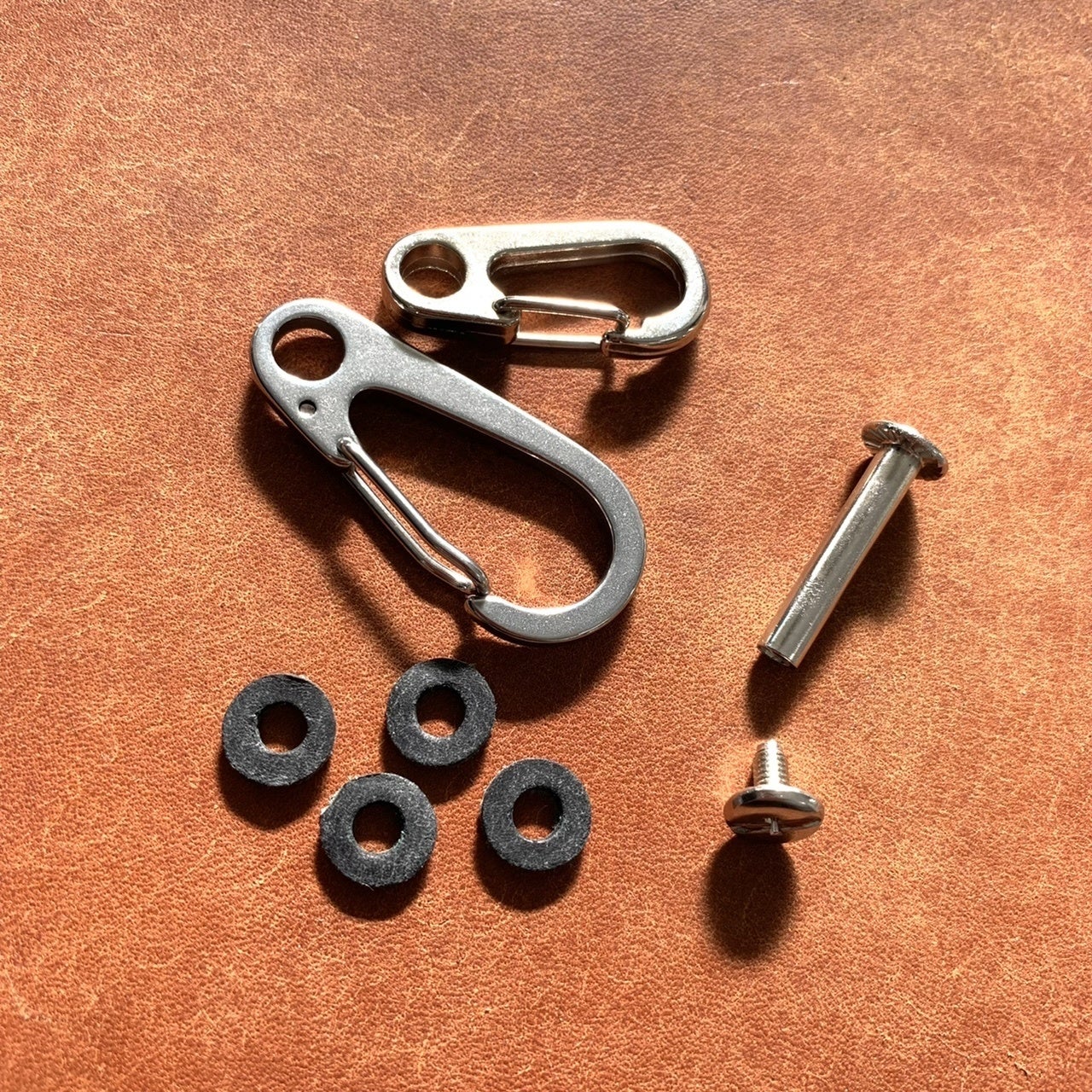 おかげさまで現在(11/11時点)の達成率は395%を超えました。数多くのご支援をいただき誠にありがとうございます。今回はKururi開発の裏話をご紹介させていただきます。画像はKururiの構造の核心部でもある組ネジとカラビナの画像ですが、よく見ると丸い穴の空いた革パーツが4つ写っています。今回はこの何の変哲もない革パーツについてお話しさせていただきます。カラビナが回転する事が特徴のKururiですが、カラビナが2つ付いている為、それぞれのカラビナがぶつかり合ってしまうというという課題が生じました。それを解消するのが例の革パーツなのです!!このパーツをカラビナを挟むように取り付ける事により、カラビナ同士のぶつかりやカラビナが左右にガチャガチャと動いてしまう現象を大幅に軽減する事に成功しました。ちっちゃいパーツですが侮れない重要なパーツなのでした。勿論このパーツもしっかりと同色の革を使用しております。Kururiは開発スタッフも一押しの商品ですので、多くの方にお届けできる事をとても嬉しく思います。ご検討中の皆様、ご支援いただいた皆様もプロジェクト終了まで宜しくお願いいたします。