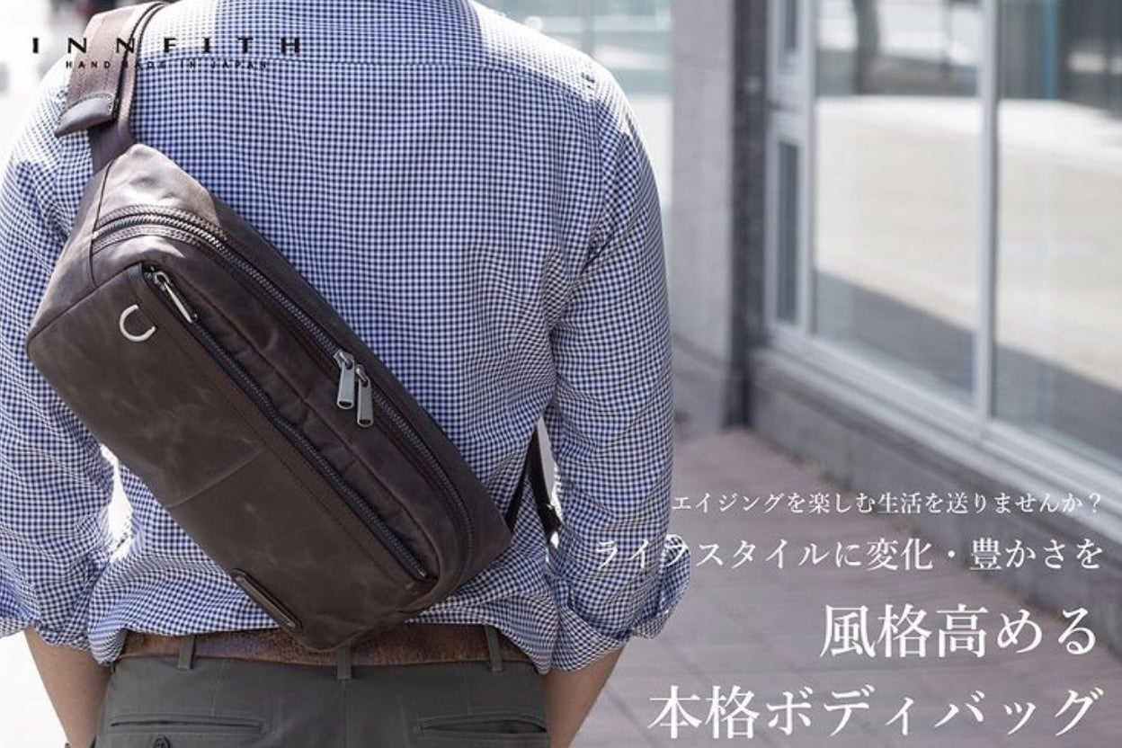 こんにちは!T3.プロジェクトチームです。本日は、いつもお世話になっている仲間のブランド【INNFITH】のプロジェクトをご紹介させていただきます。【INNFITH】エイジングであなただけの表情に!風格高める本格ボディバッグ東京の鞄メーカー発ブランド「INNFITH(インフィス)」が提案する本革ボディバッグ。姫路で鞣(なめ)されたレザーは上質な質感。丈夫で使う度手に馴染み、3年後、5年後と長くお楽しみ頂けます。たっぷり収納でカジュアルからビジネスまでOK!自転車通勤などにもオススメ。風格を高めて大人の移動を演出します。(プロジェクトページより引用)オンでもオフでも使えそうなスッキリとしたデザインが良い雰囲気です。コンパクトさを保ちながら大容量。収納ギミックが多彩でどこに何を入れるかが明確なので、使い易さが想像できますね!体に当たる面にはクッション材と凹凸を出すステッチを入れ、通気性と背負い心地を確保しています。こういった細部の丁寧な仕立ては日本製ならではですね。気になる方は是非、プロジェクトページをご覧下さい!プロジェクト終了まで残り32日だそうです。